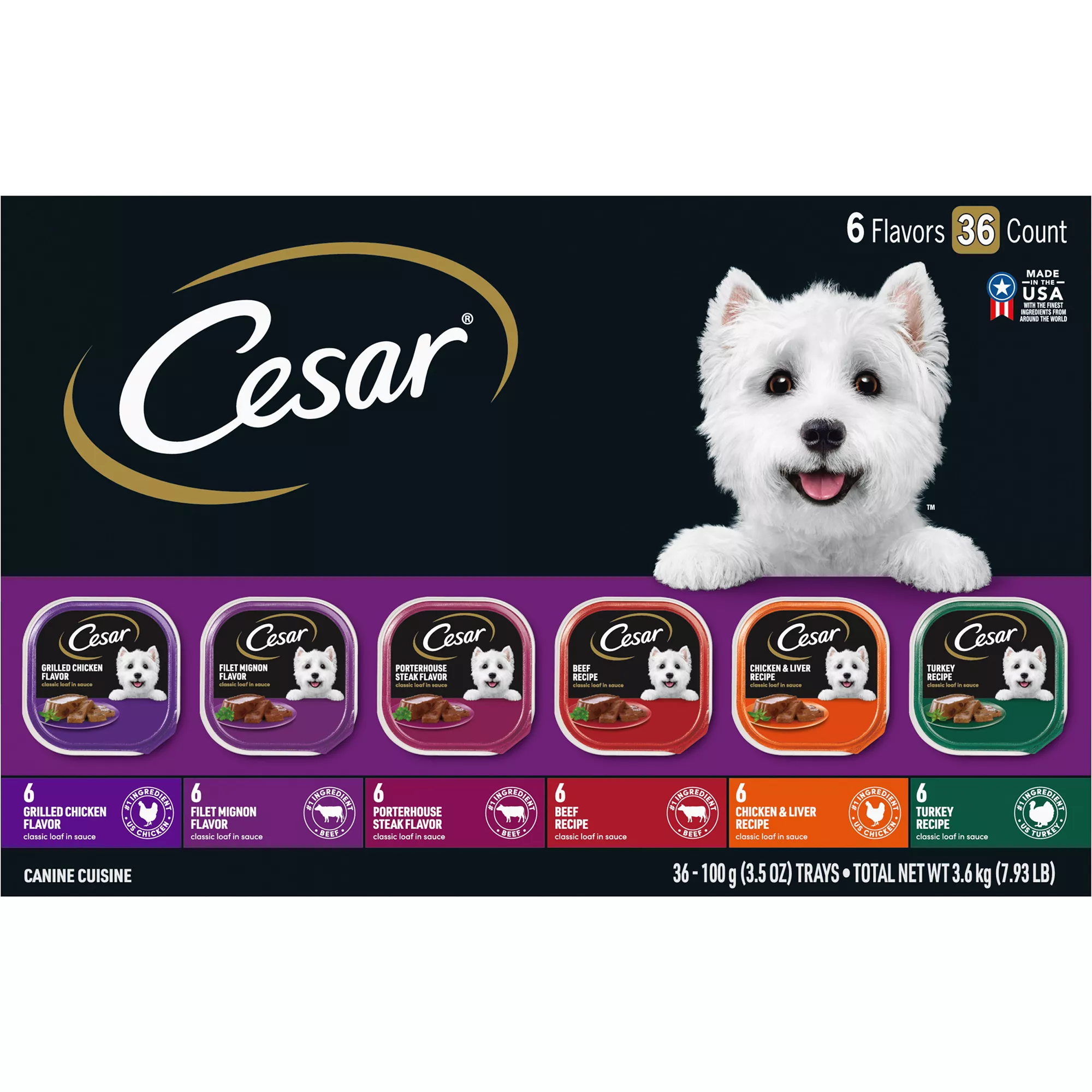 Find the food your furry best friend loves most at PetSmart. Dogs of all sizes love the taste of Cesar® dog food and food toppers! Cesar dog food and treats offer a variety of enticing tastes and textures for your pet. Easy-to-open trays and tubs of wet dog food come in singles or multipacks so they can enjoy a variety of delicious flavors each day. With yummy, nutritious meals and snacks in a variety of textures, Cesar dog food and puppy food offers tasty meals that even the pickiest of pets will love.