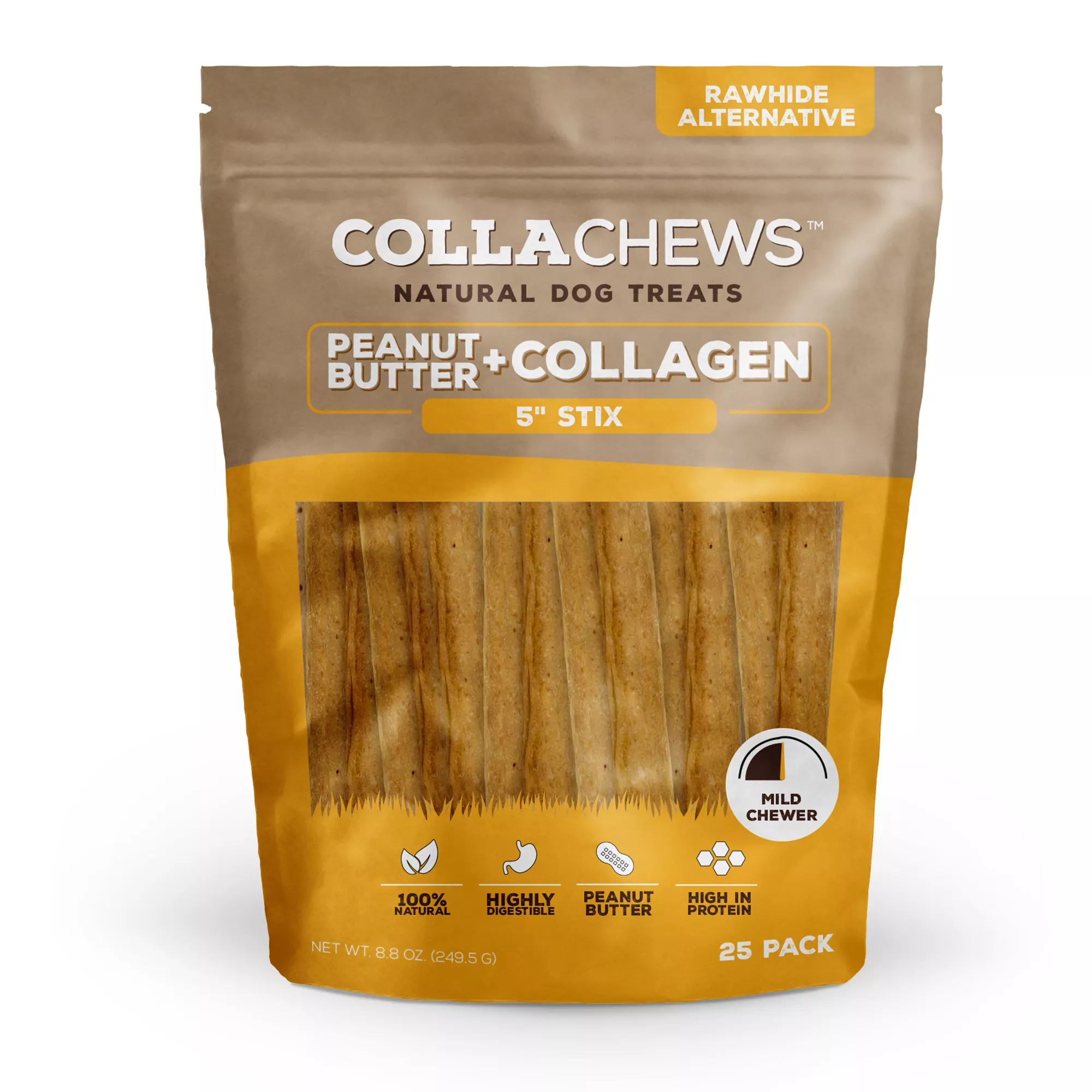 Are you looking for a new dog treat to keep your favorite pup feeling satisfied? Collachews™ dog treats are a great choice for any dog that is in need of a special treat. Collachews dog treats come in a variety of flavors such as beef and chicken, and also there are vegetarian options like peanut butter and more. Collachews dog treats are formulated with dogs always as the number one priority. With high quality and highly digestible ingredients as well as all natural protein sources packed into each treat, Collachews help keep your pup feeling satisfied and their tummy feeling happy.