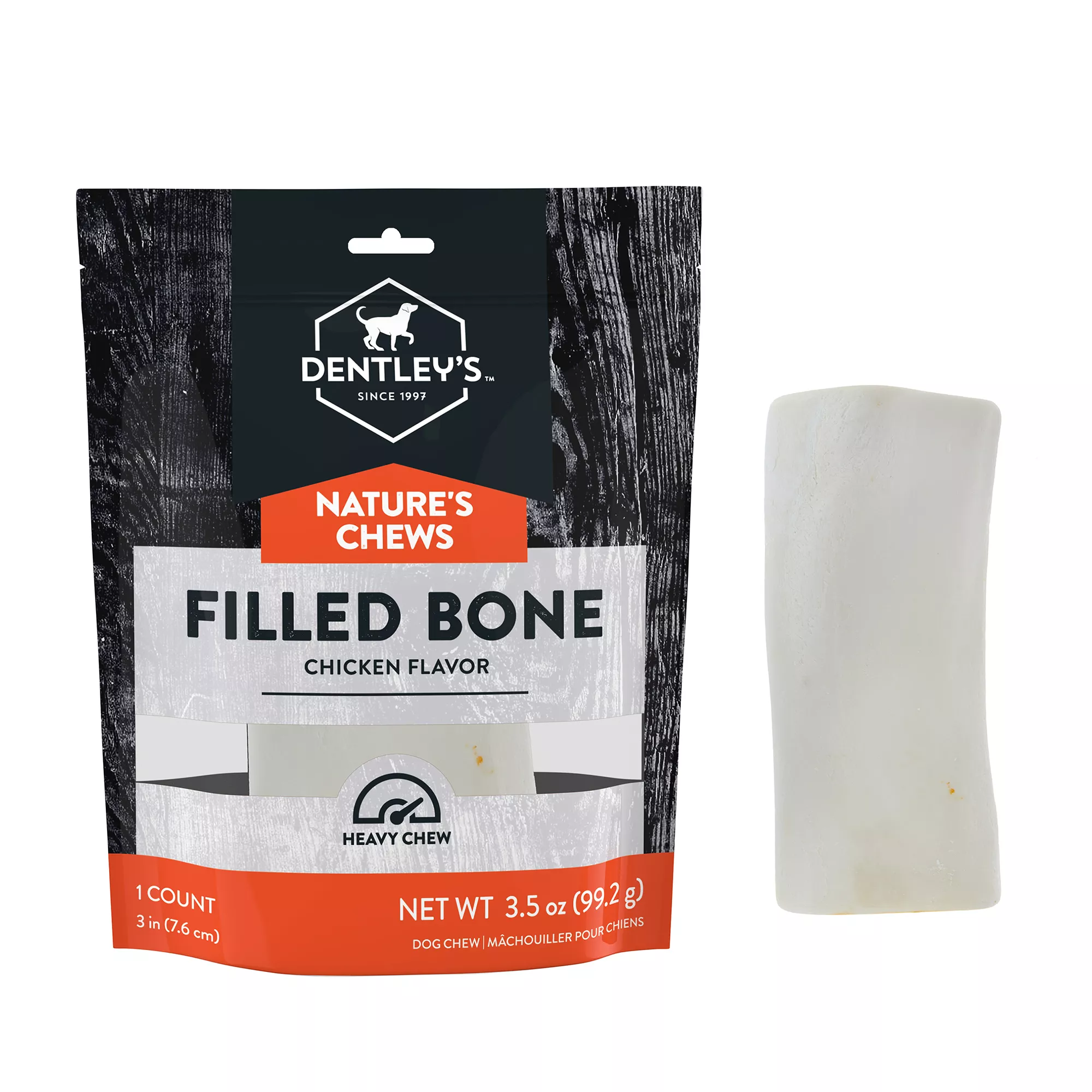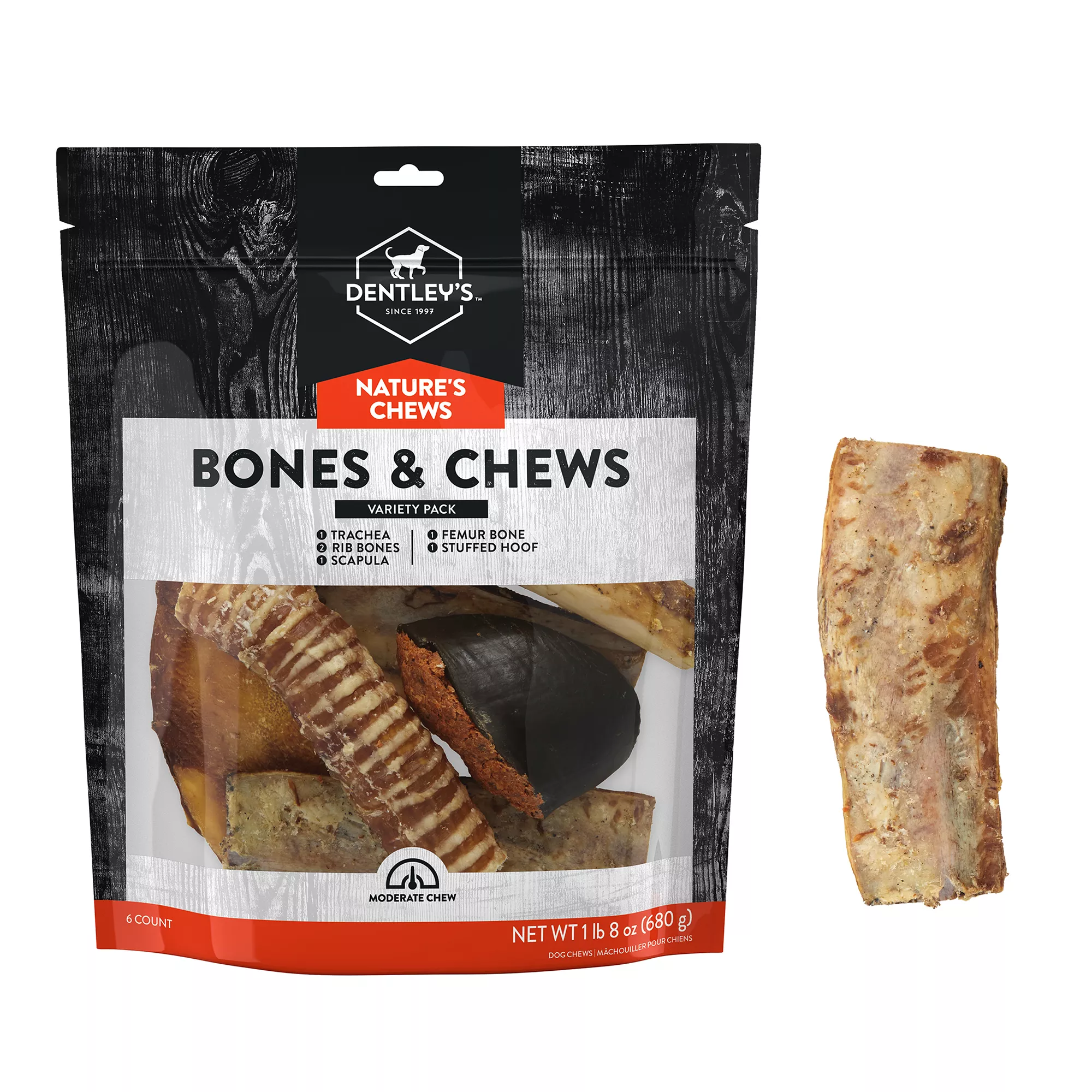 power chewers and everything in between, Nature’s Chews feature a variety of textures to suit every dog’s chewing style. Your dog will love Dentley’s Nature’s Chews and you will feel great giving it to them because of the recognizable all natural ingredients like femur bones, chicken feet, pig ears, and more.