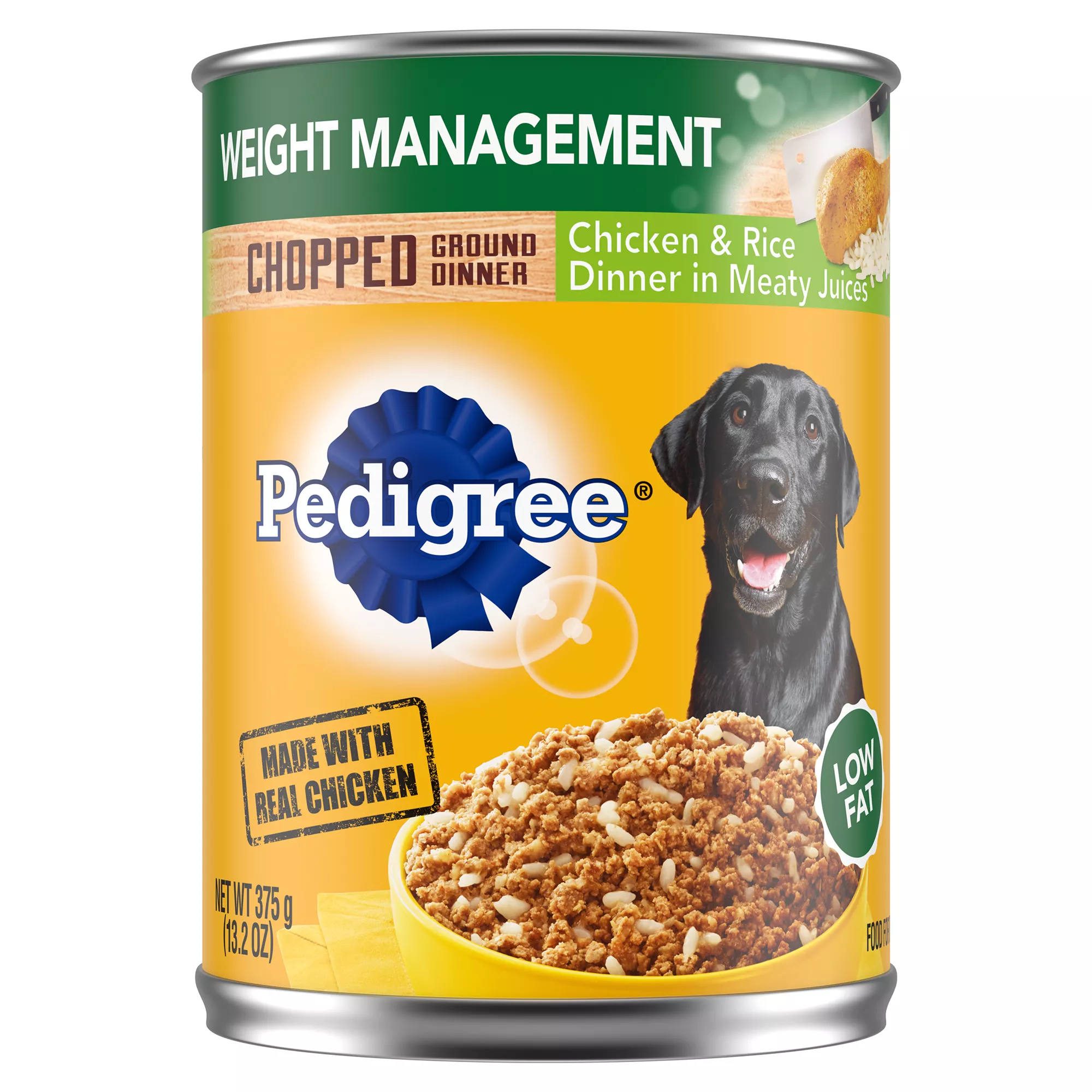 Pedigree Chopped Ground Dinner Weight Management Adult Wet Dog Food, Chicken & Rice, 13.2 oz. Can