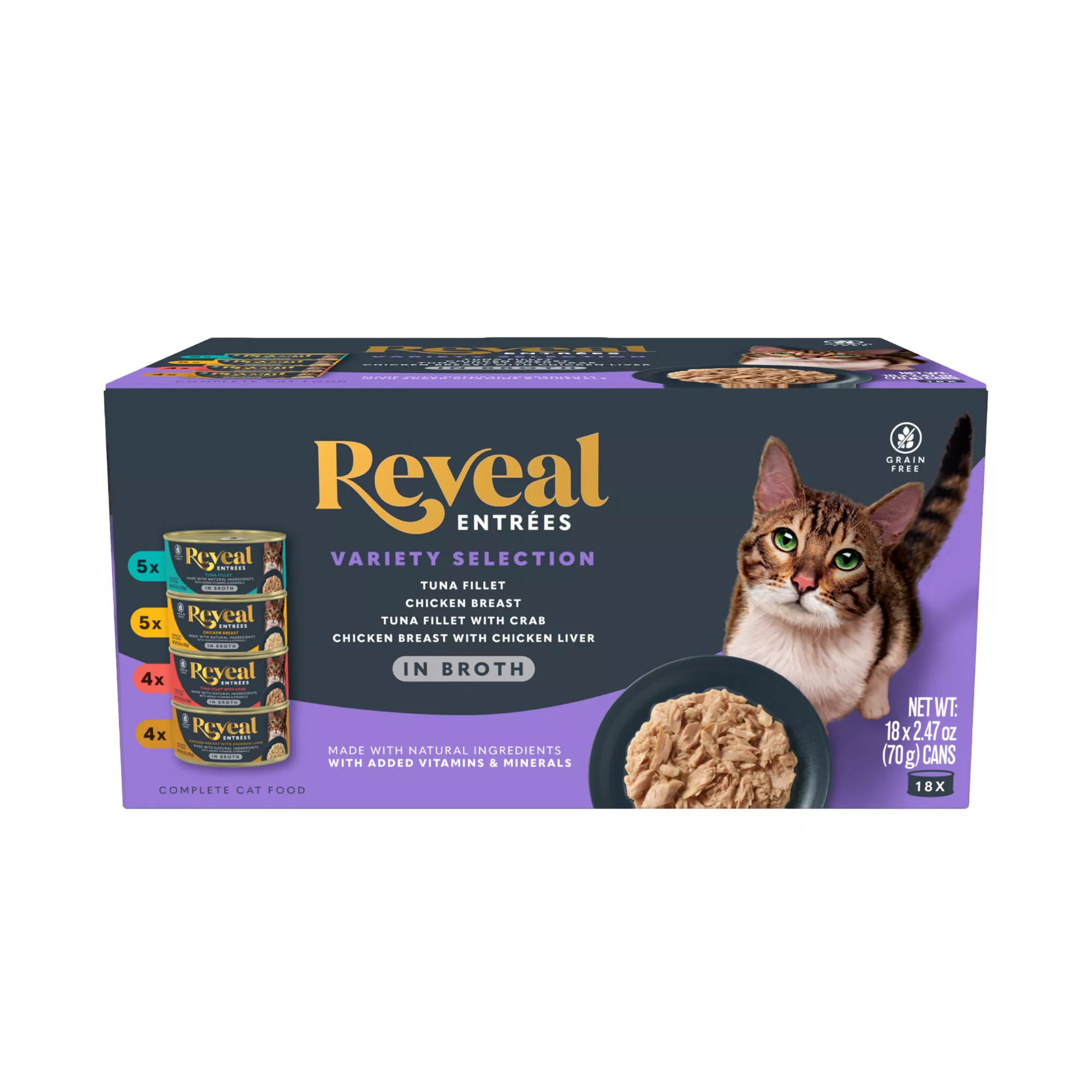 Reveal Entrees Adult Wet Cat Food In Broth - Grain Free, 2.47 OZ, 18 Count, Variety Pack