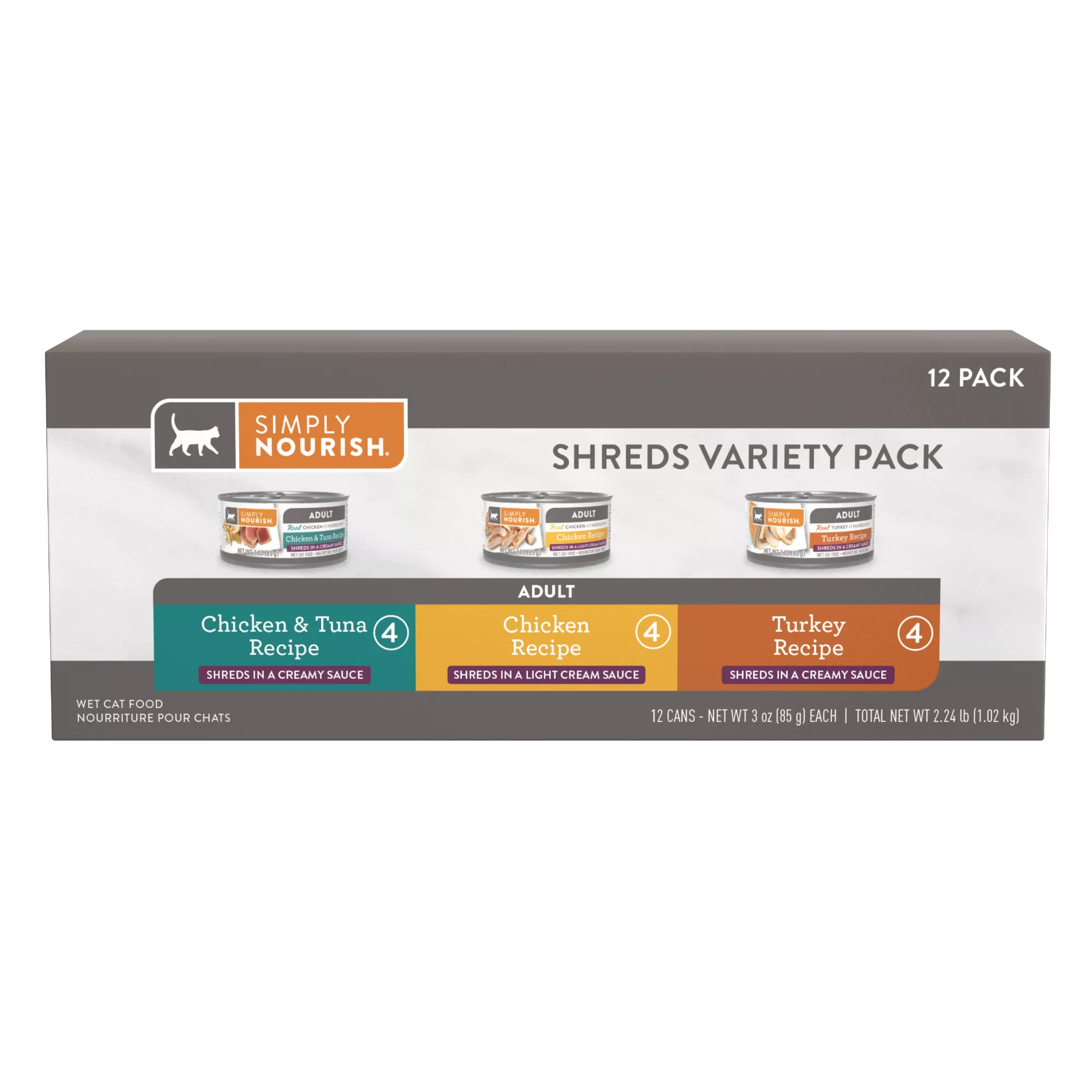 Give your cat the nutrition they need in the flavors they crave. Simply Nourish cat food, toppers and treats are made with high-quality proteins, digestible carbohydrates, fresh fruits and vegetables and essential nutrients – so you can both feel good about what they eat. Available in cans, bags and pouches, it's easy to find the right Simply Nourish cat food for your pets and your lifestyle.