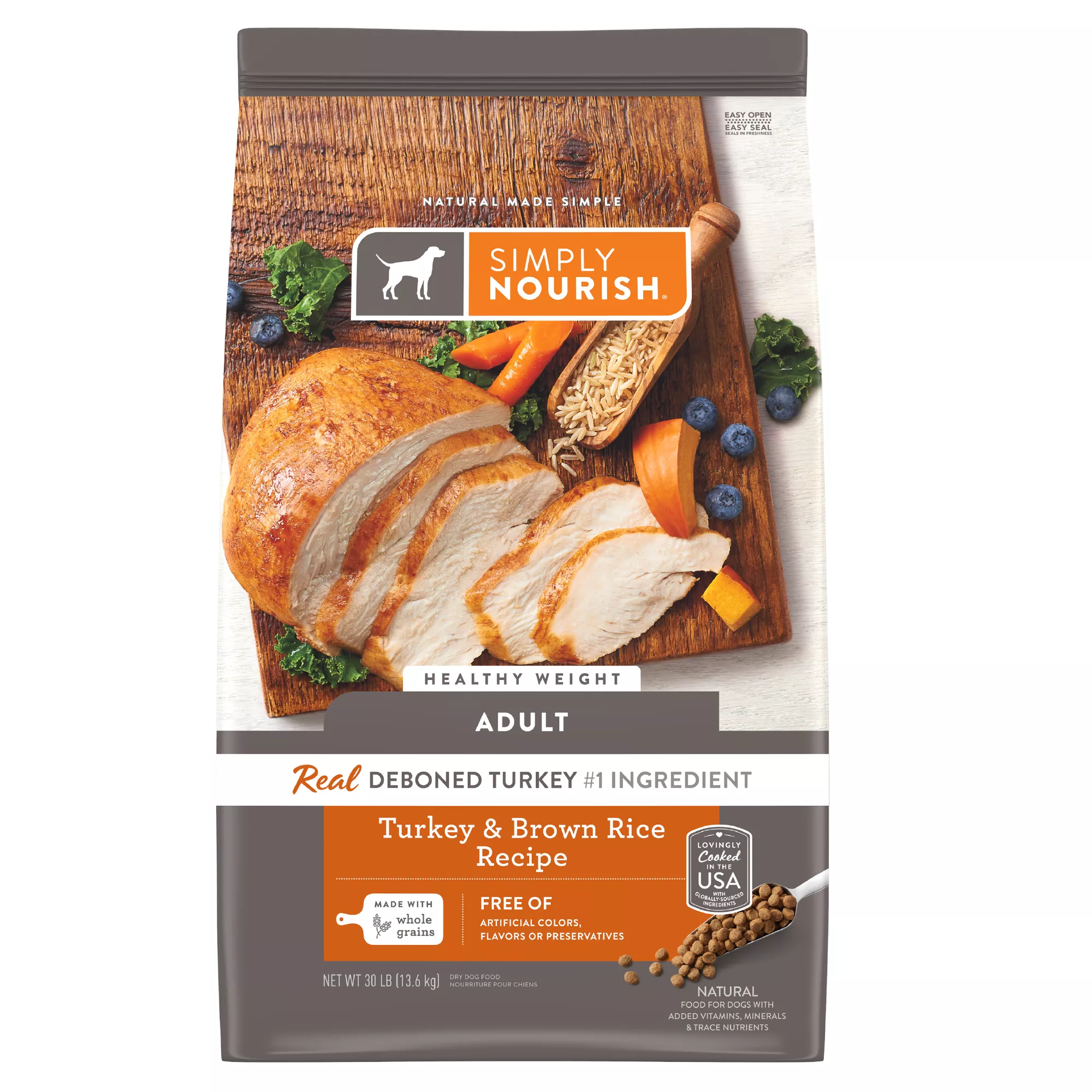Simply Nourish dog food and puppy food is made with high-quality proteins, digestible carbohydrates, fresh fruits and vegetables and essential nutrients. Our food is made with carefully sourced ingredients such as deboned meat and fish, a great source of protein, minerals and fatty acids. Simply Nourish canned food, dry food, toppers and dog treats like biscuits and jerky make meal time and snack time delicious and nutritious featuring meaty taste in each and every bite. Simply Nourish brand pet food is distributed by the Simply Nourish Pet Food Company. Shop our collection of Simply Nourish for dogs at cats at every age and stage of life.
