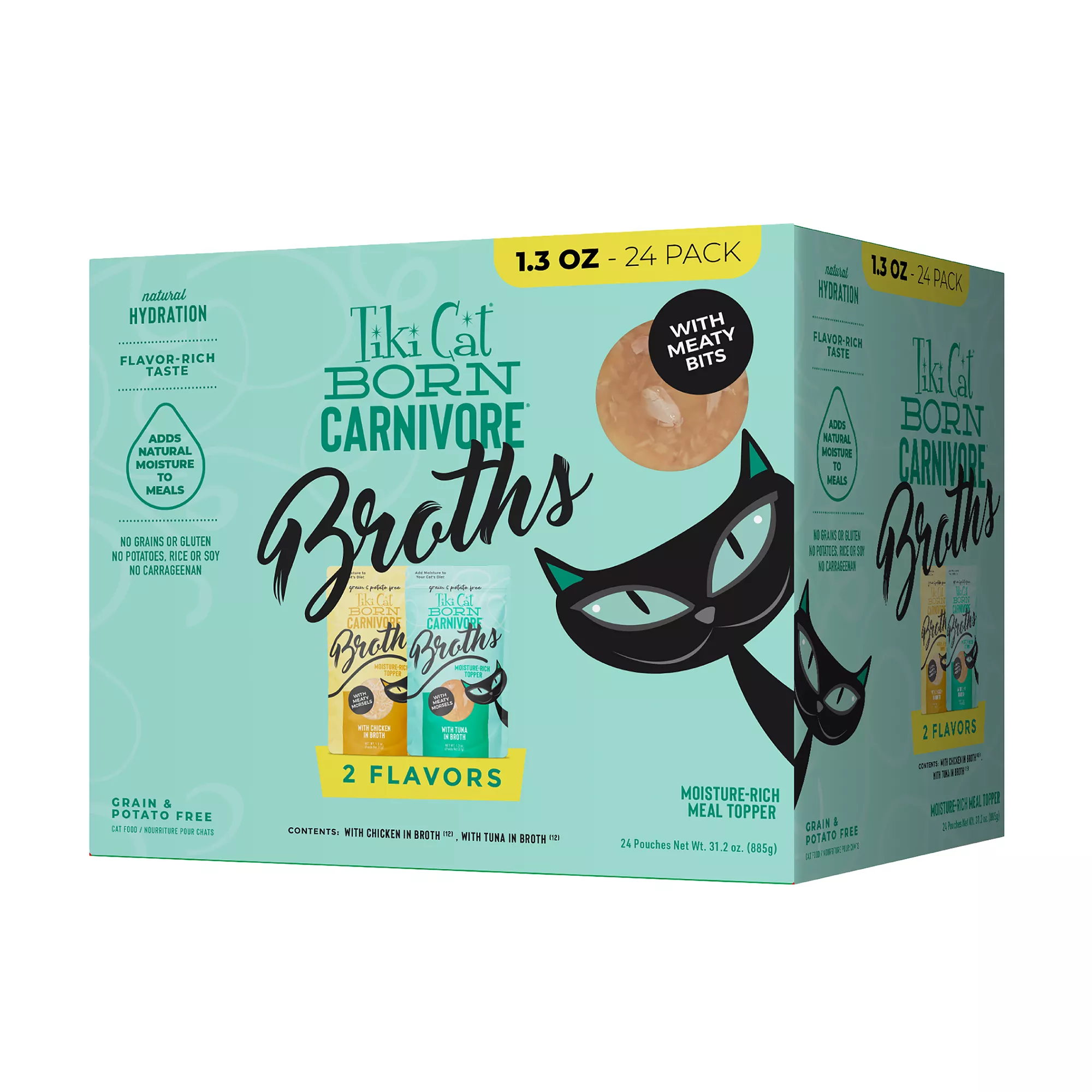 Tiki Cat Born Carnivore Broths Cat Food Topper - 24 Count Variety Pack