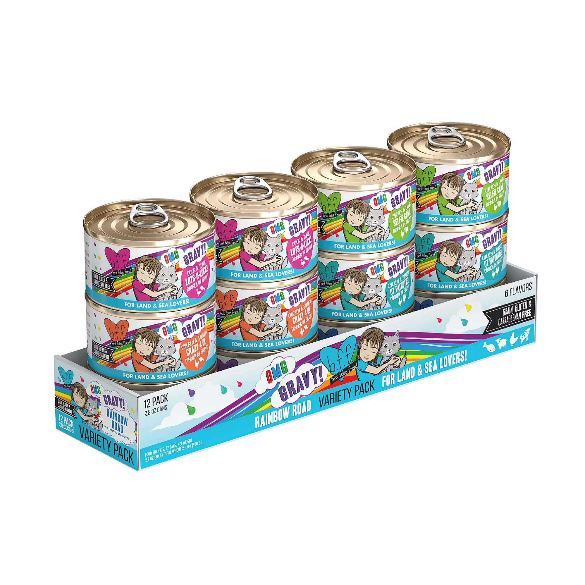 B.F.F. OMG Gravy! For Land & Sea Lovers Rainbow Road Wet Cat Food - Variety Pack, 12ct