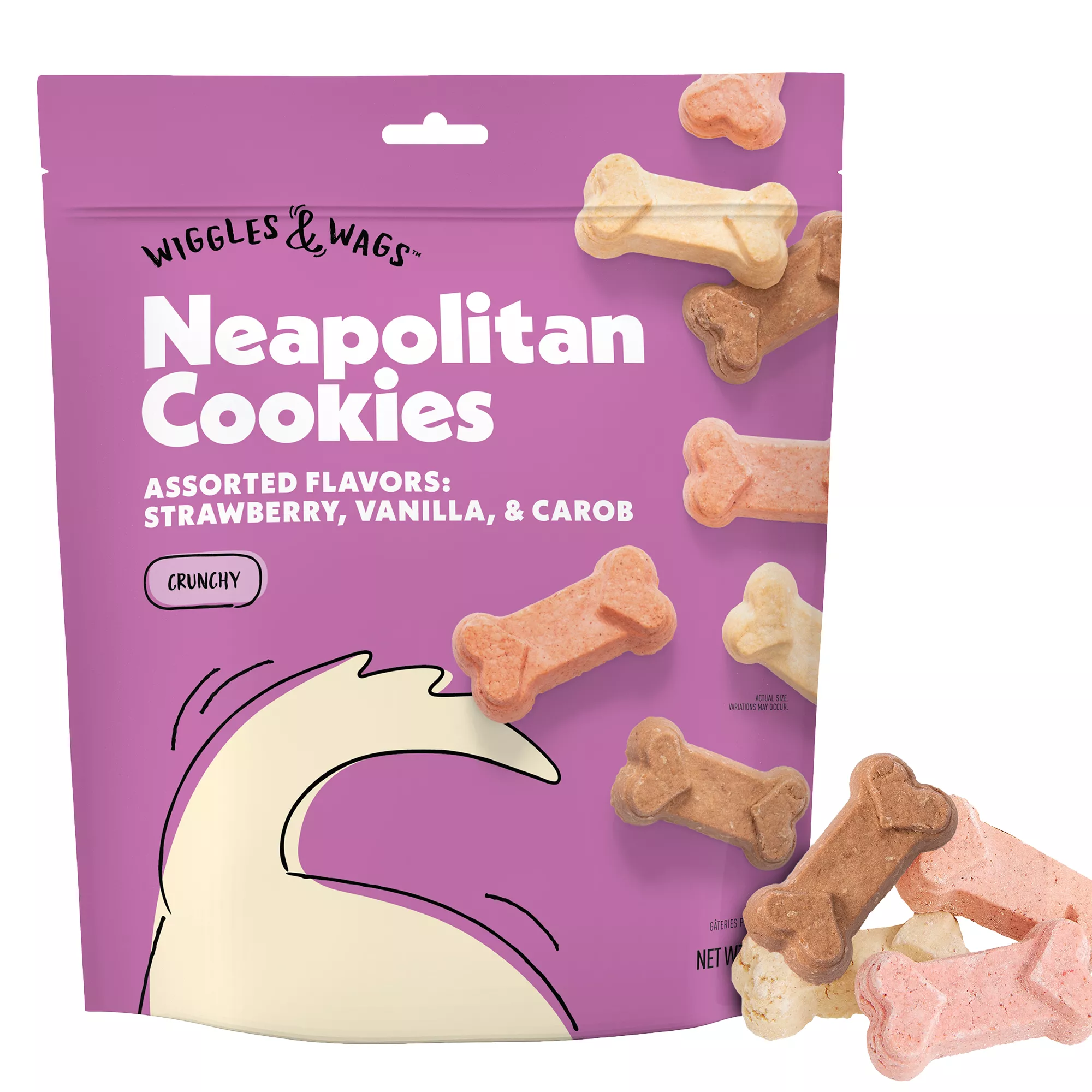 Wiggles & Wags Strawberry, Vanilla & Carob Neopolitan Cookies Dog Treats 14 OZ