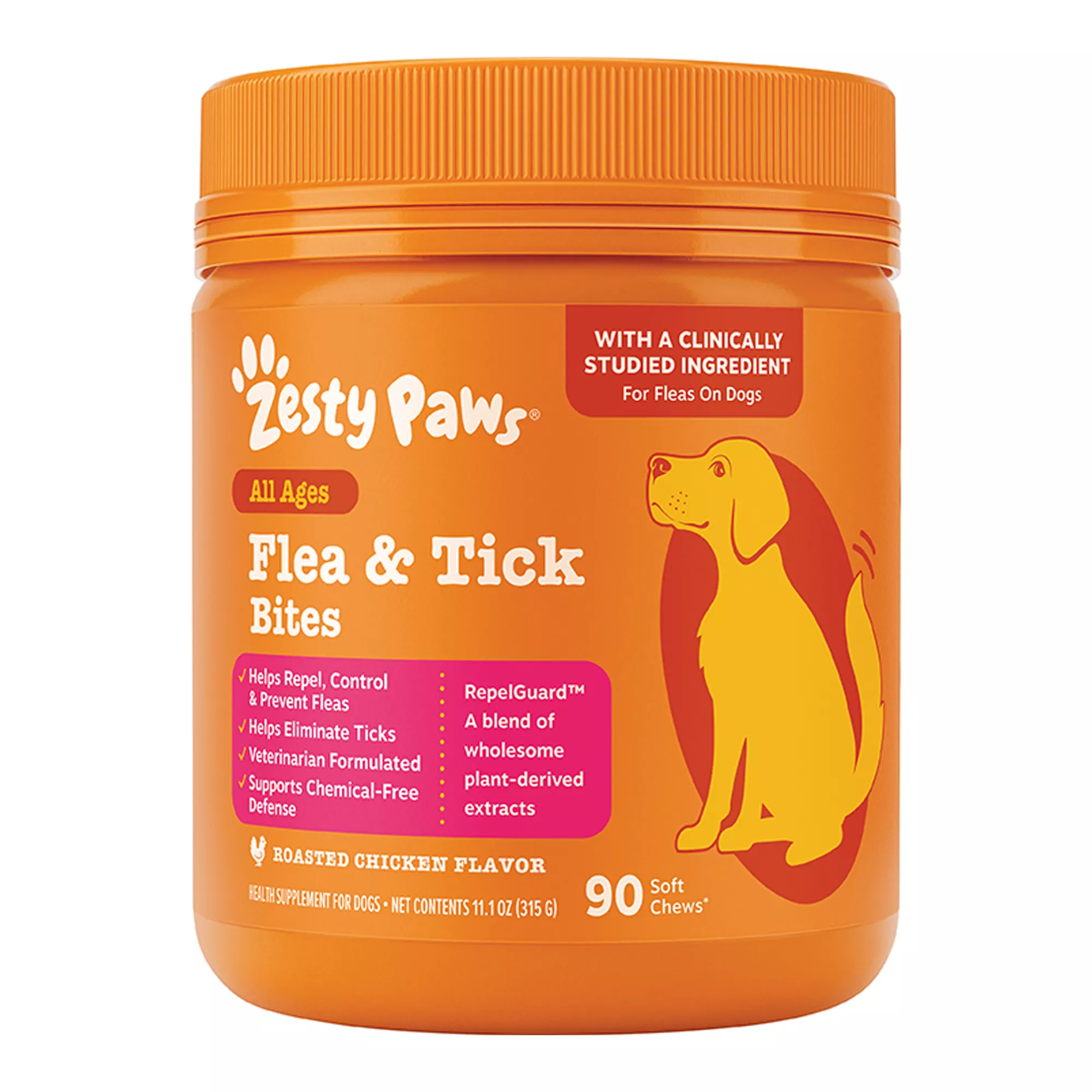 Zesty Paws Flea & Tick Bites for Dog, Roasted Chicken 90ct