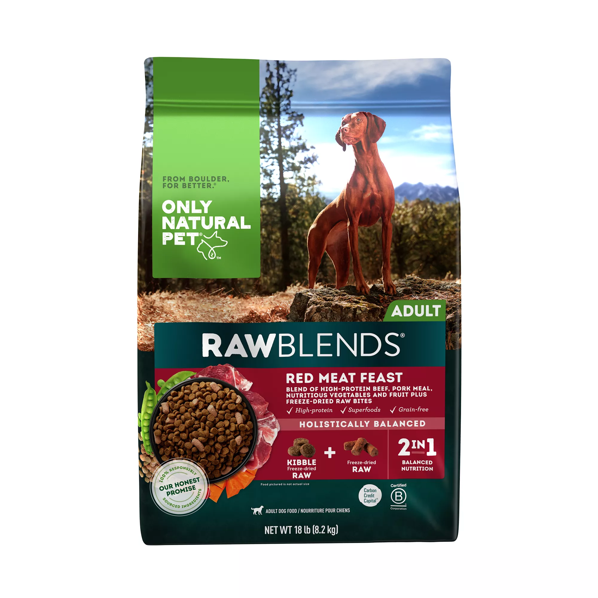 Only Natural Pet RawBlends Adult Dog Food - Grain Free, With Raw Bites, Red Meat Feast