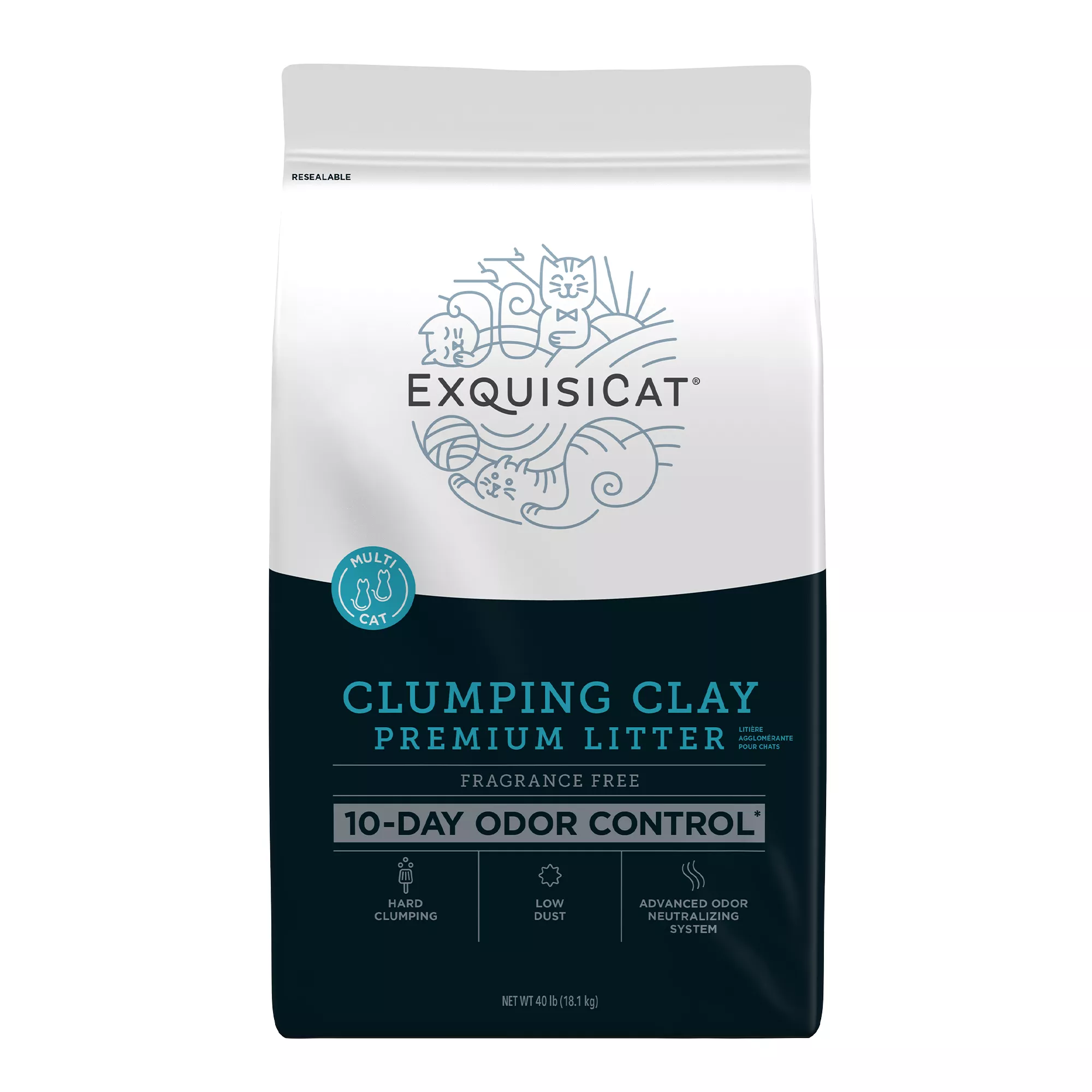 ExquisiCat Litter Premium Clumping Multi-Cat Clay Cat Litter - Unscented, Low Dust