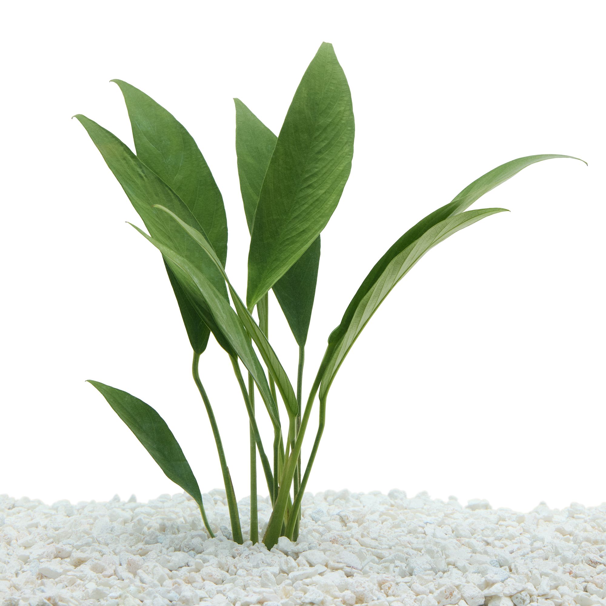 This Top Fin® Anubias Species Aquatic Plant is a tall plant that grows up to 12 inches (30.4) tall. This plant grows completely underwater and is snail free. For a pleasing effect, place this tall (background) plant in the back and see how it adds color and beauty to your underwater world. Exclusively at PetSmart.