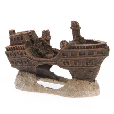 DescriptionNo underwater world is complete without a sunken pirate ship, which is what makes this Top Fin Pirate Ship Aquarium Ornament such a great addition to your aquarium. This highly detailed piece adds mystery, fun and intrigue to your underwater decor. Only at PetSmart.