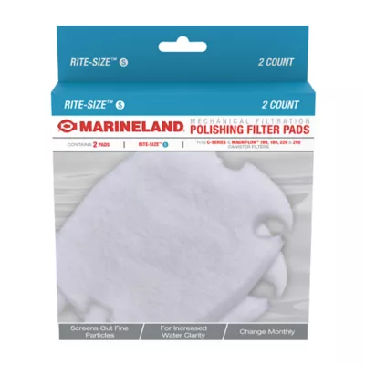 Marineland Polishing Filter Pads support mechanical aquarium filtration for increased water clarity. The polishing filter pad acts as a water polisher, screening out fine particles, dirt and debris. The pads fit Marineland C-Series and Magniflow 160, 180, 220 and 250 Canister Filters and are compatible with Marineland Rite-Size T. Each pack contains 2 polishing filter pads.