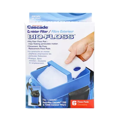 DESCRIPTION Cascade presents Bio-Floss Replacement Poly Fiber Floss Pads for Cascade 700 & 1000 Canister Aquarium Filters. This 6-Pack of Cascade Bio-Floss Poly Fiber Floss Pads is specially designed for Cascade 700 & 1000 Canister Filters, allowing for simple and easy media replenishment. Don't worry about cutting to size, these pads fit directly into media trays within these Cascade Canister Filters.