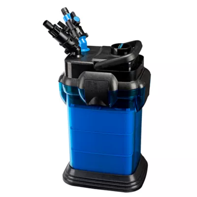 State of the Art Features: In addition to the push button primer that allows for a simple and quick prime, this Canister Filter also features two independent valve taps that rotate 360°. This makes for easy maneuvering, even in the tightest aquarium cabinets! The 3 stackable, large capacity media baskets give aquarists the ability to customize filtration, and include built-in handles for utmost convenience. Furthermore, the included spray bar helps aerate your aquarium by evenly distributing filtered water over the surface.Filter Media: This Canister Filter comes standard with 3 Poly Fiber Floss Pads, 1 Coarse Bio-Sponge, and 1 Bag of Activated Carbon. In addition to optimizing the colonization of anaerobic bacteria, this filter traps floating particulate matter, removes harmful chemicals and toxins, clears up discolorations, and reduces foul odors from your aquarium's water.
