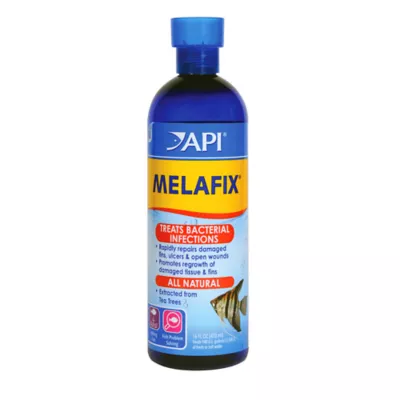 API Melafix Fish Bacterial Infection Treatment is a proven antidote for fresh and saltwater aquarium fish diseases. This treatment includes tea tree extract, known for its healing properties, and in addition to bacterial diseases treats a variety of issues ranging from wounds and abrasions to fin and tail rot whole also helping to re-grow damaged fin rays and tissue.