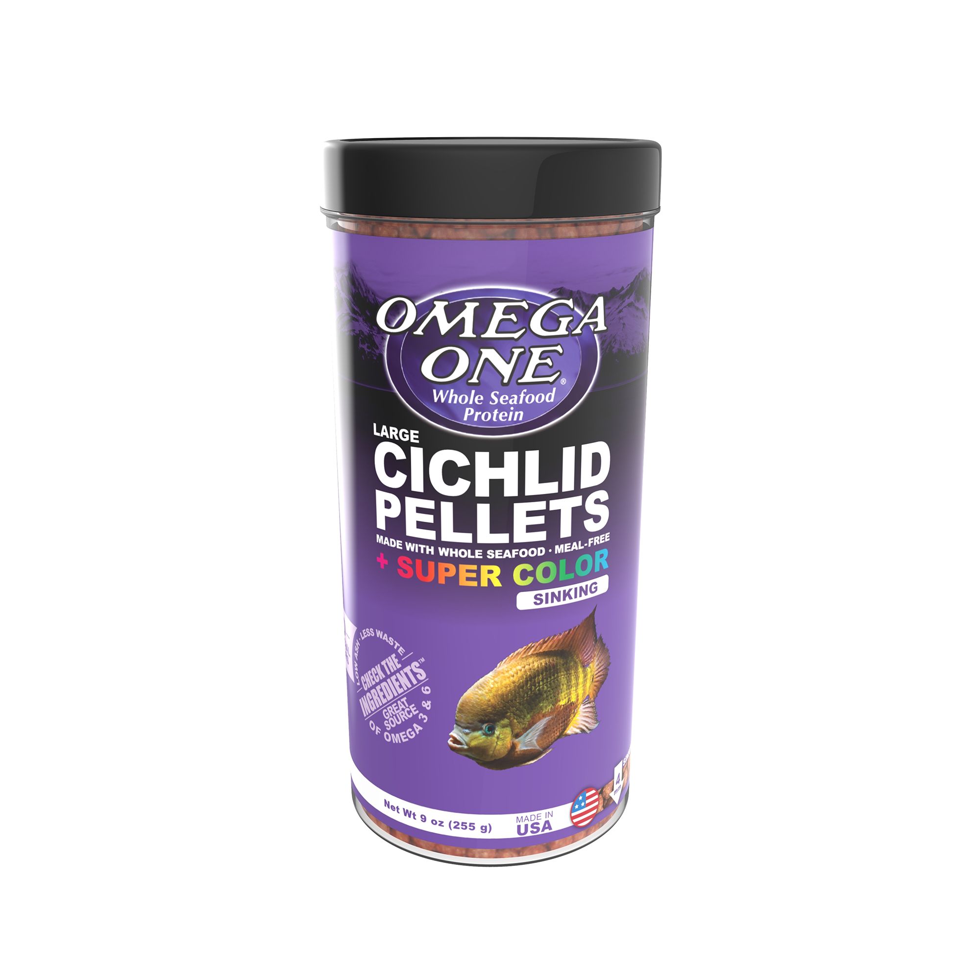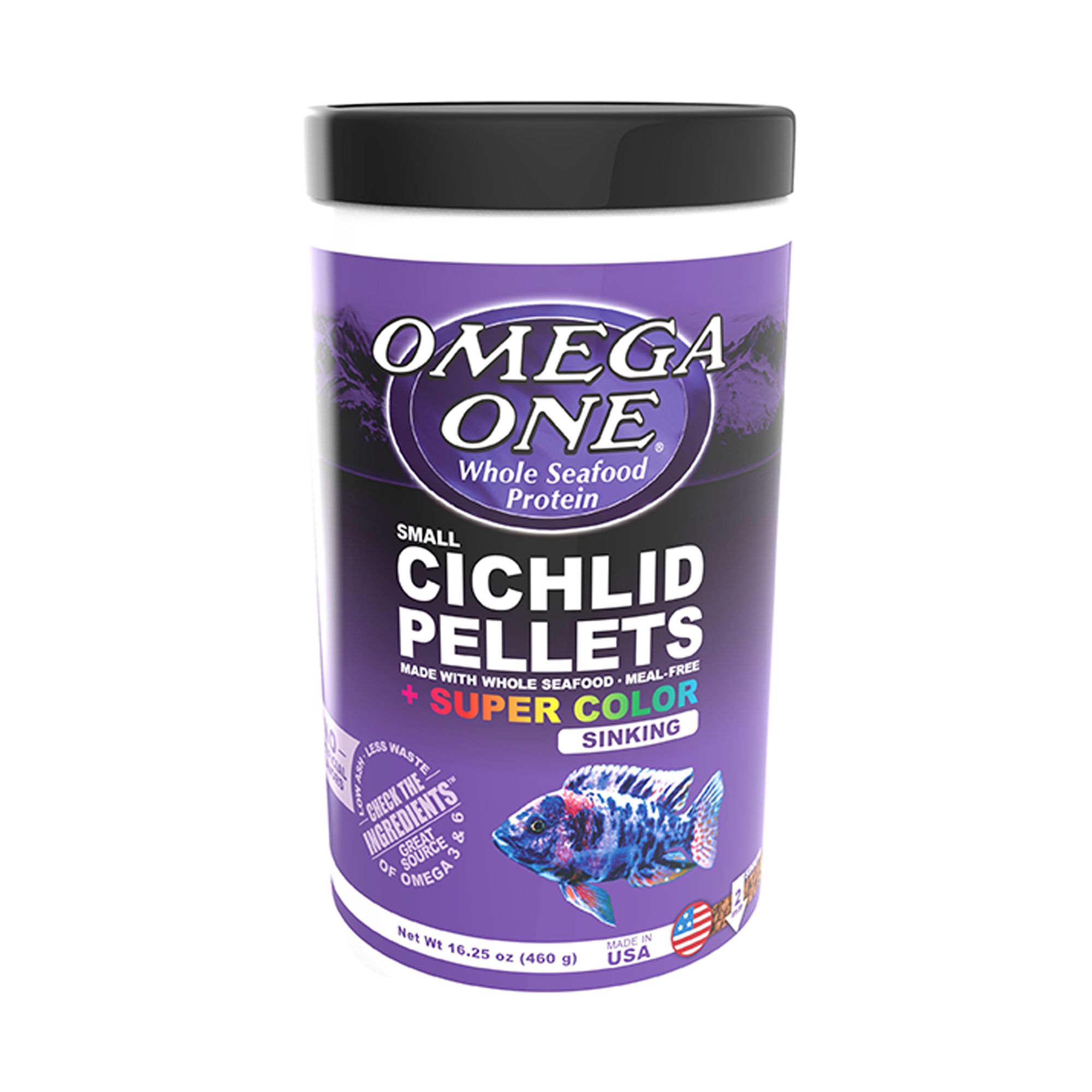 Contains a nutrient-rich blend of plant proteins, such as spirulina, banana, and pea, with shrimp and Menhaden (herring family) sources to supply essential amino acids for optimal Cichlid growth.