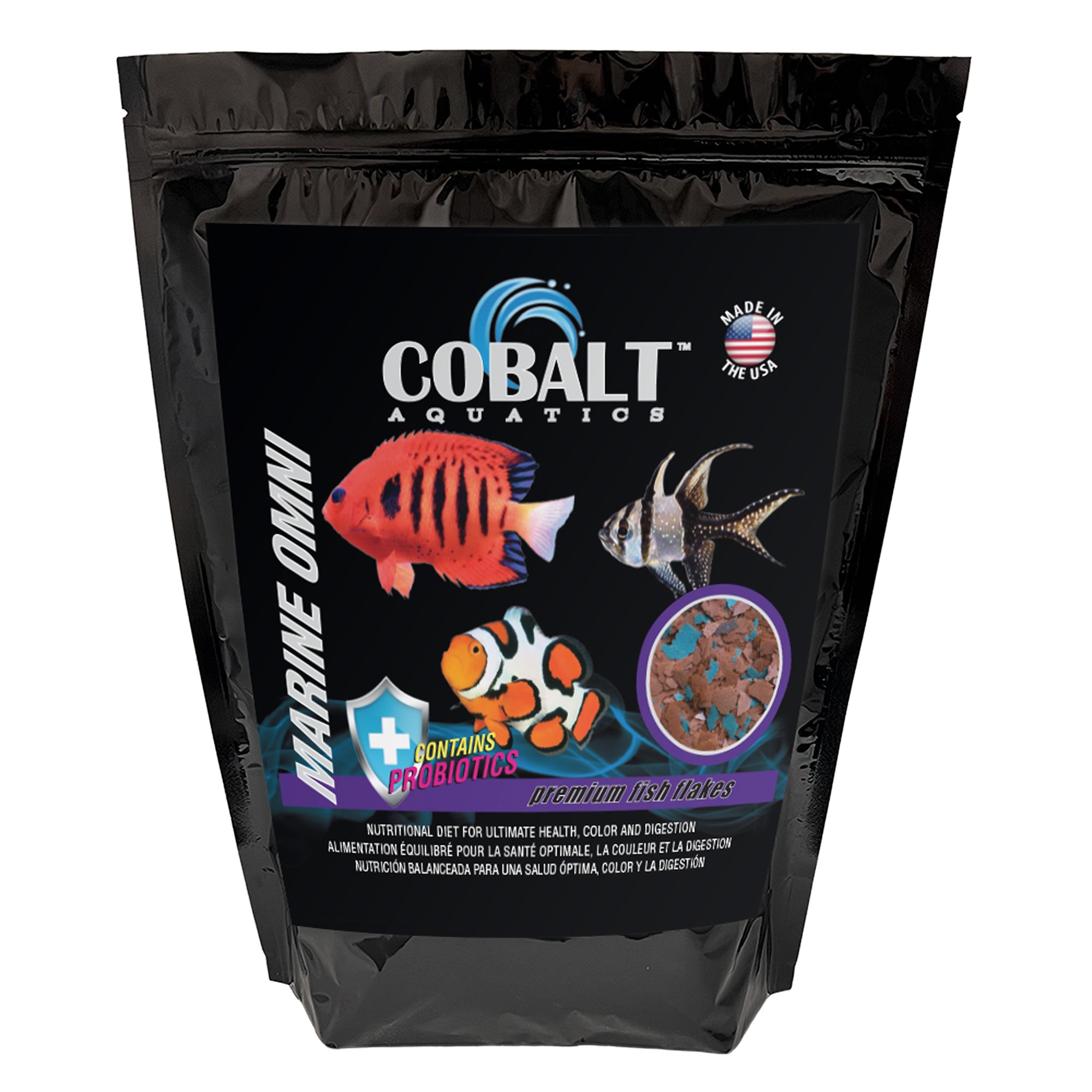 Cobalt Aquatics Marine Vegi Flakes feature a complete formula for all marine herbivorous fish. Their highly palatable formula helps finicky marine fish to eat prepared foods, and they are loaded with Spirulina, Kelp, plankton and squid for consistent growth and superior color. Enhanced with Probiotics, vitamins and immunostimulants, each formula also includes the signature Cobalt BLUE flake that is super-packed with immunostimulants and a triple-vitamin boost which helps fish fight off disease and keeps them in top shape and color. Will not cloud water.
