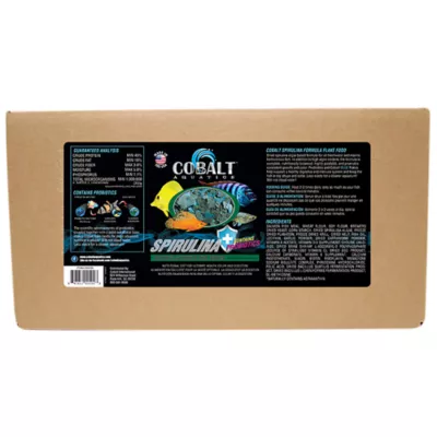 Cobalt Aquatics Spirulina Flakes feature a Spirulina based formula for all freshwater and marine herbivorous fish. In addition to high algae content, Cobalt Spirulina Flakes are nutritionally balanced, highly palatable, and promote consistent growth and color. Enhanced with Probiotics, vitamins and immunostimulants, each formula also includes the signature Cobalt BLUE flake that is super-packed with immunostimulants as well as a triple-vitamin boost which helps fish fight off disease and keeps them in top shape and color. Will not cloud water.