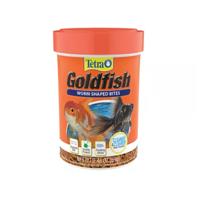 Tetra Goldfish Worm Shaped Bites provide a nutritionally complete diet for all varieties of goldfish. A good source of protein, these floating food sticks help support energy and growth. Formulated with carotenoids, they also enhance the yellow, orange and red pigments in goldfish. These bites are designed for easy consumption and mimic the shape of a worm, aligning with your goldfishâs instinct to eat worms in the wild. The shape of the stick allows easy portioning as well. Our bite-sized floating sticks have been specifically designed to be easily digested by fish, helping to keep aquarium water cleaner and clearer when used as directed.