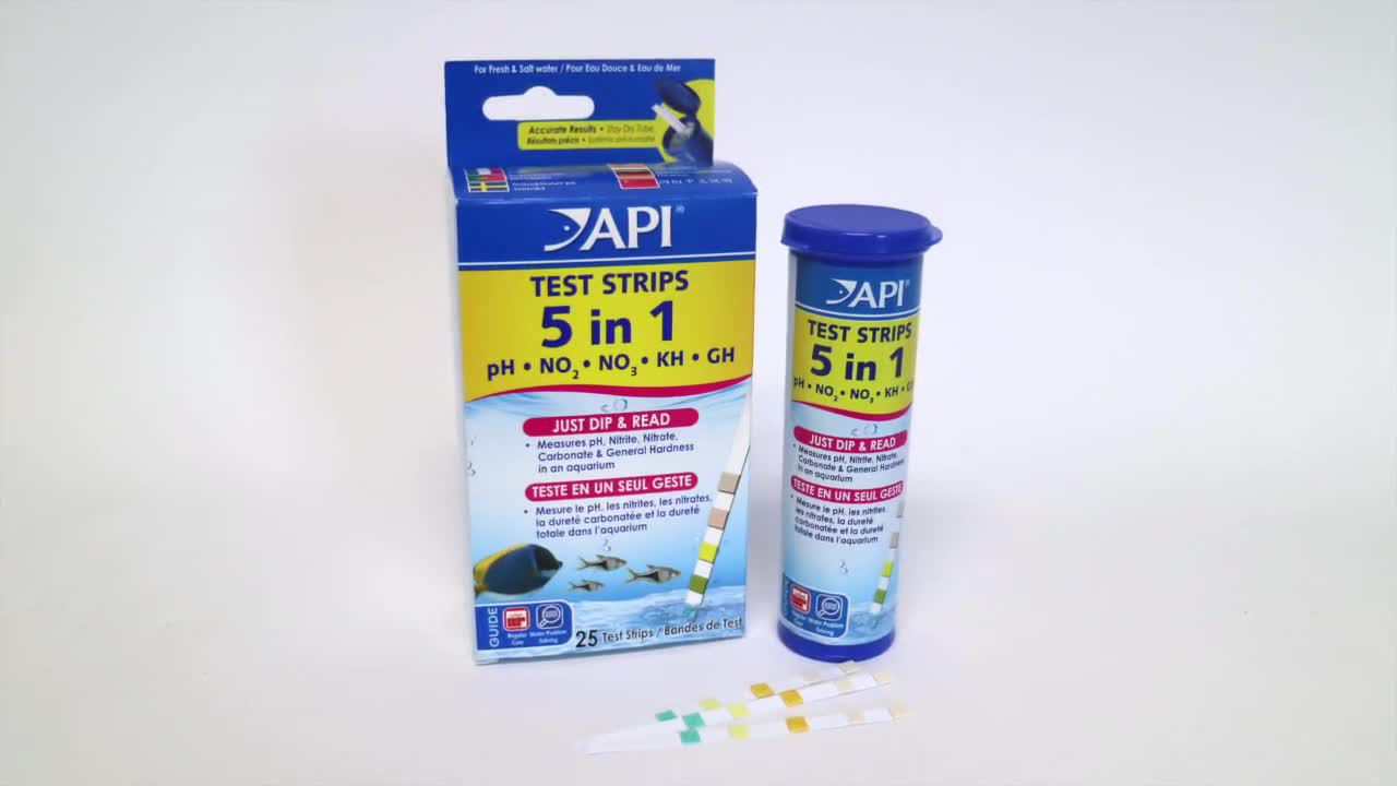API 5-in-1 Test Strips is perfect for use in freshwater and saltwater aquariums. Use this product to monitor a number of important levels to keep water safe and healthy for your fish.