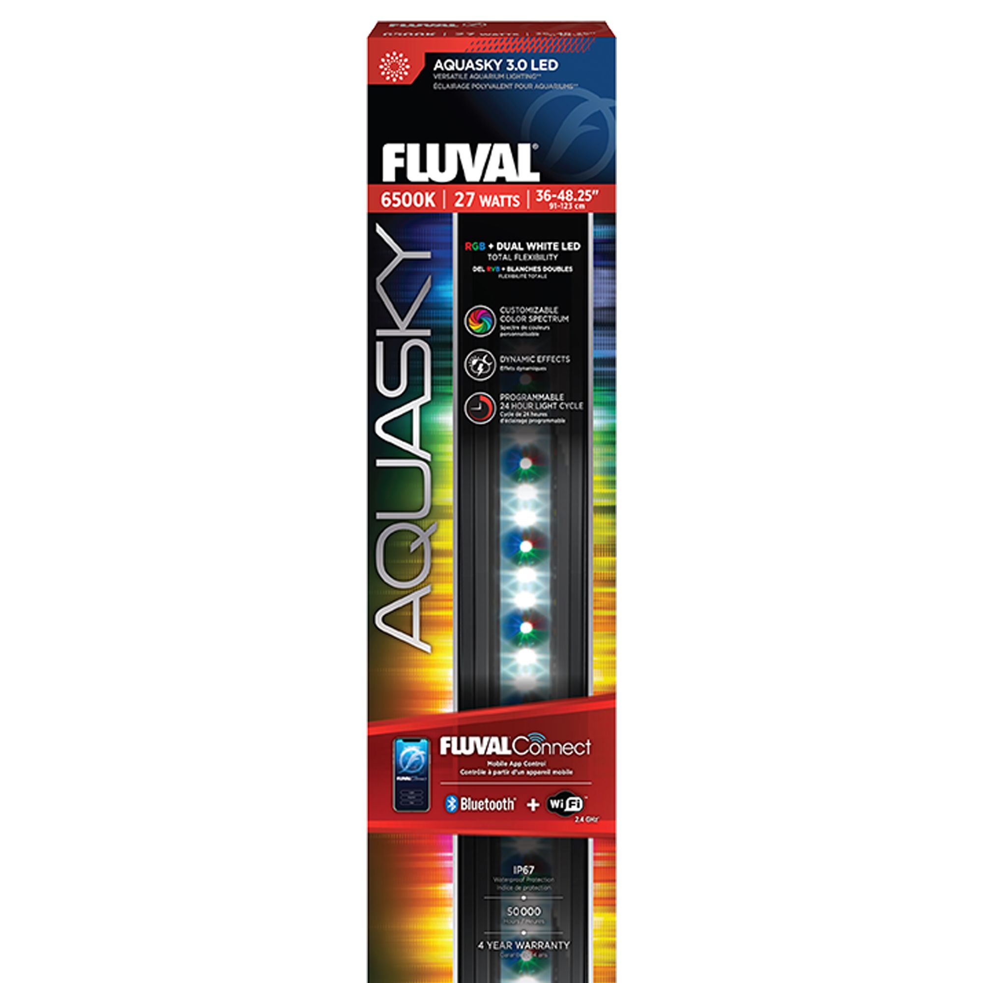 Bring an endless array of incredible color combinations to your aquarium with the Fluval Aquasky LED. This APP-controlled LED features a programmable 24-hour light cycle, with gradual sunrise, mid-day and night settings. Mimic the natural cycle of the sun and moon to create a realistic environment for your fish. A customizable color spectrum along with multiple weather effects make the options at your fingertips seemingly endless. Download the free Fluval SmartApp on your mobile device to control Aquasky and all its built-in features. No additional equipment required.