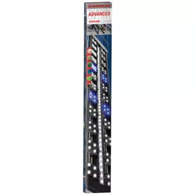 The Marineland® Fully Adjustable Essential LED Light for 40-gallon aquariums fits 36-48-inch tanks. It includes 20 white and 4 blue LED PODs for customization across your fish tank. Move or add PODs to highlight key areas in your aquarium while also controlling intensity. Use the color recommendations on packaging to create different assortments like plant and coral growth, color-enhancing, color-changing and GloFish® looks. The advanced 40-gallon light fits up to 46 LED PODs, allowing you the flexibility to create an aquarium environment unique to your personal style.