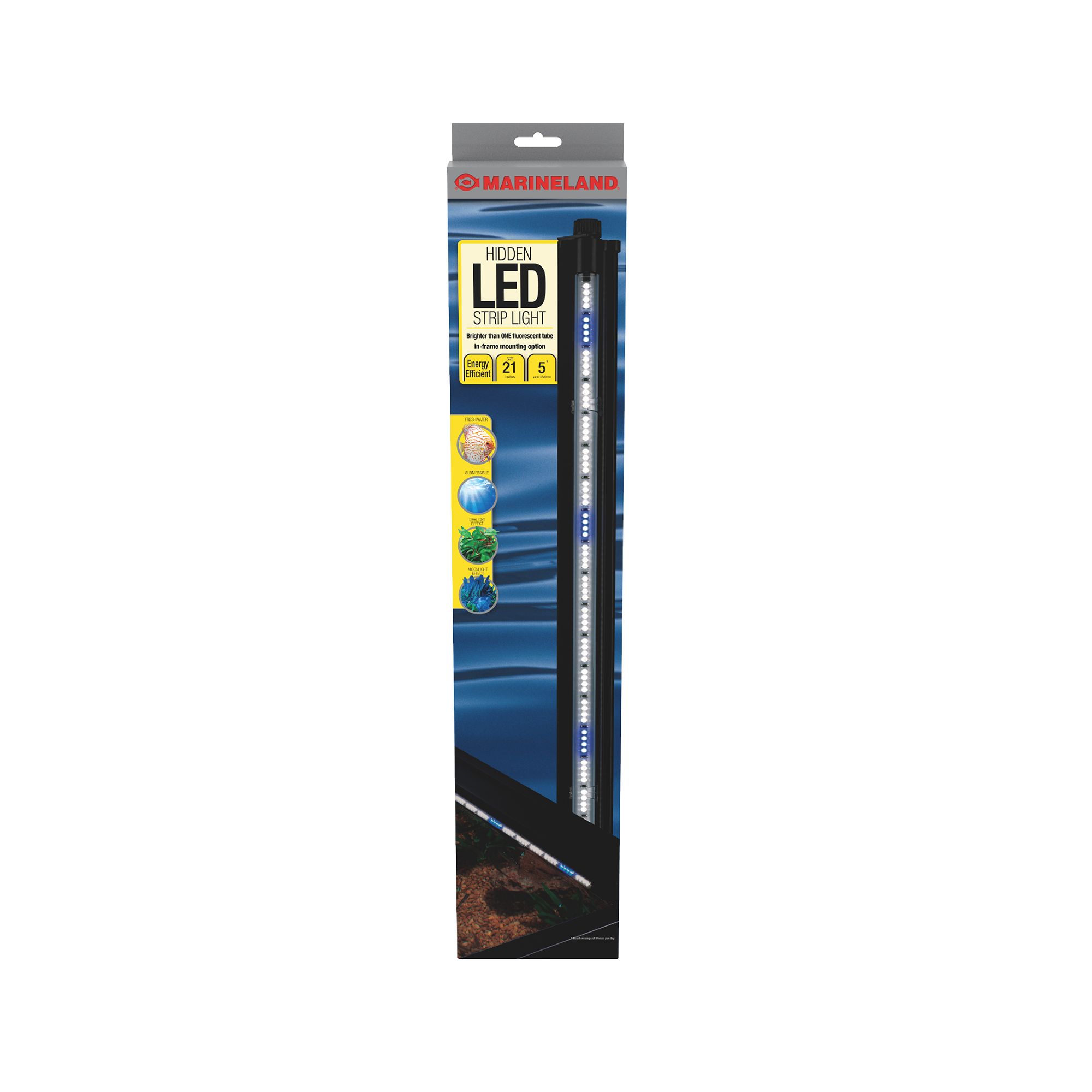 Our Top Fin LED Hood is an energy efficient LED tube that features 2-color LED in light-blue and white. In addition, the plastic hood comes with adjustable brackets and is easy to install. Only at PetSmart.