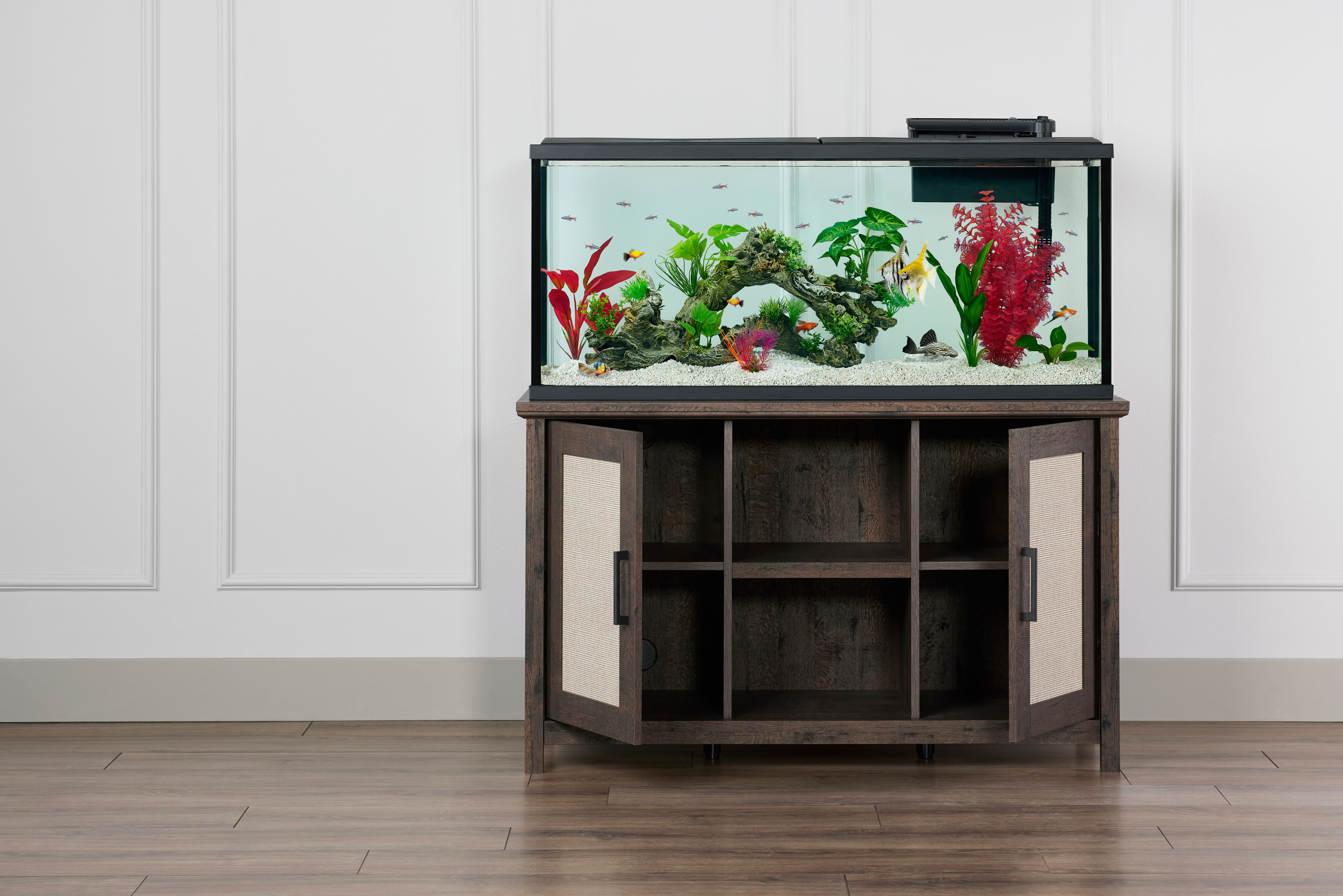 The Top Fin Chalked Chestnut Finish Aquarium Stand was designed with your home in mind to better display the beauty of your underwater world. This beautiful piece is expertly crafted, and seamlessly blends function and style into your home. Only at PetSmart.