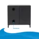 Material(s): Particle board, Raven Oak PVC wrap, Prime Oak PVC wrap, Black metal footing and hardware