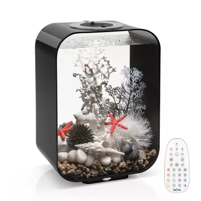 With a chic and minimalist design, a biOrb LIFE 15 MCR aquarium makes it effortless for you to elevate any space. This 4-gallon acrylic aquarium is designed to perfectly frame your biOrb so you can admire your fish and decor. This biOrb LIFE has a black color trim, adding drama to this aquarium style's framing effect. The platform base creates a stylish finished look to this unique aquarium. Everything you need to start your new hobby is included: acrylic tank, low voltage pump, LED Multi-color Remote-controlled (MCR) lighting, filtration, and manual. All biOrb aquariums are made from acrylic - which is 10 times stronger and 23% clearer than glass. Acrylic is also a good insulator, so you don't lose as much heat as you would with a glass aquarium. The MCR light will change how you experience biOrb. Choose from 16 preset colors and control the brightness of the light. You can even set an automatic day and night light cycle. There'i;s a setting to suit every mood and add to your sense of well-being. The 5-step Filtration ensures clear, healthy water with biological, mechanical and chemical filtration, water stabilization and oxygenation. Unlike most aquariums, a biOrb's filter is fitted at the bottom of the aquarium, because fish waste sinks. The ceramic media that surrounds the filter provides a large surface area for beneficial bacteria. With quick and easy set-up, you'll soon be setting your creativity free and decorating your biOrb with the endless variety of biOrb aquarium decor (sold separately). Additionally, biOrb aquariums are designed for easy maintenance and easy access to feed your fish. Depending on your choice of fish species, you may only need around 15 minutes of maintenance per month using the biOrb Service Kit (sold separately). The aquarium is backed by a 2-year warranty. Enjoy the priceless gift of nature's wonder in your home with biOrb.