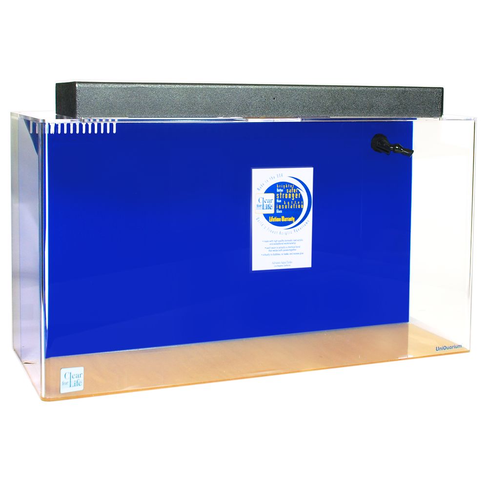 The UniQuarium line comes complete with built-in filtration to keep your water quality in pristine condition. Mechanical and biological filtration is included, and there is an area to add chemical filtration media. The colors of your fish will come alive in these beautiful acrylic aquariums. Acrylic aquariums are brighter, safer, and stronger than glass. Not only will your fish look better, they'll be safer; acrylic won't shatter like glass and is a much better insulator to protect your fish from temperature fluctuations. All Clear-For-Life acrylic aquariums come with a Limited Lifetime warranty against leakage so you know your investment is protected. These aquariums are the perfect choice for freshwater, marine, reef or planted aquarium setups.