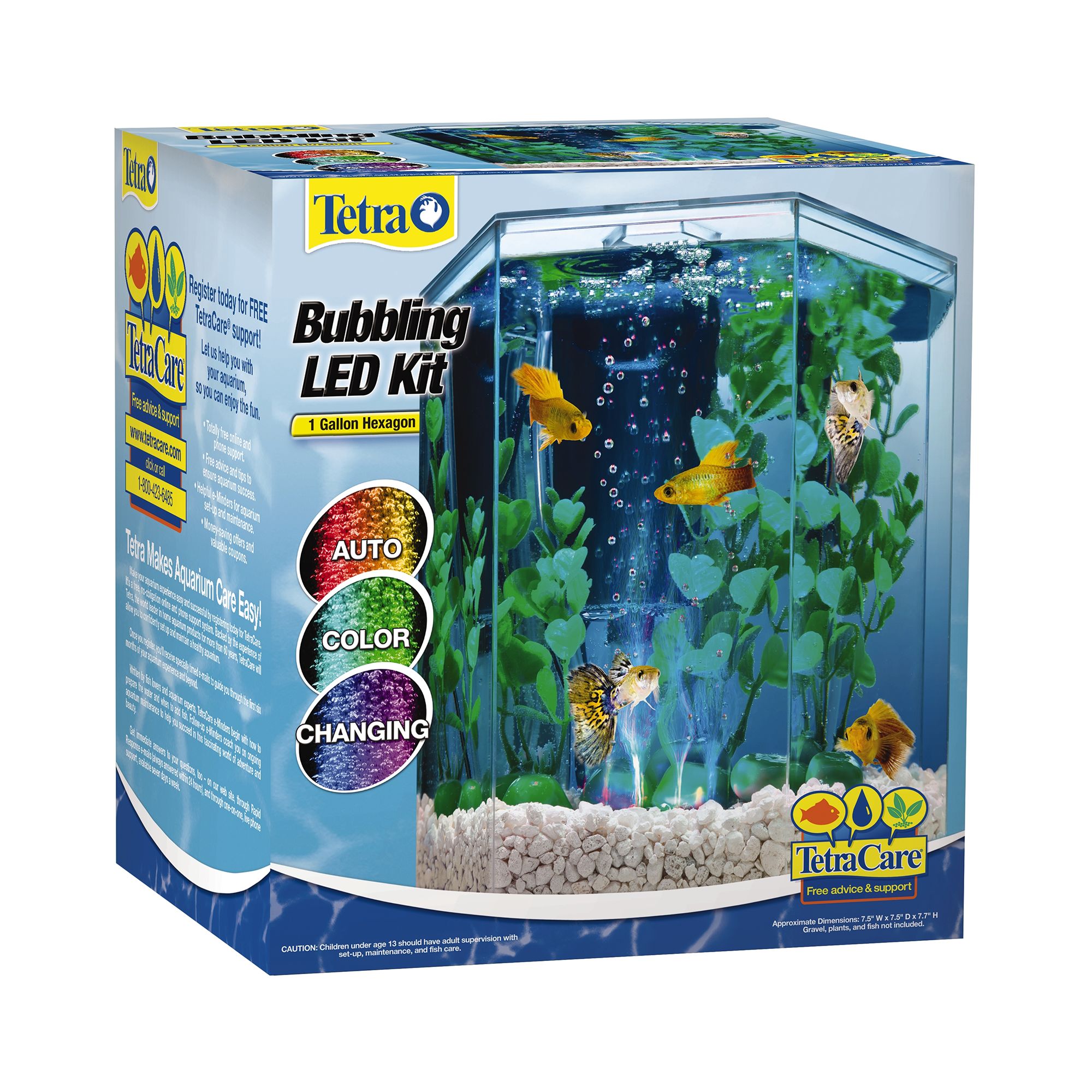 Includes: 5 gal Curved-Corner, Glass Tank, Tetra® Hidden Filtration With An Adjustable Flow Filter Pump, Glofish® Cycle Light With Four Modes.