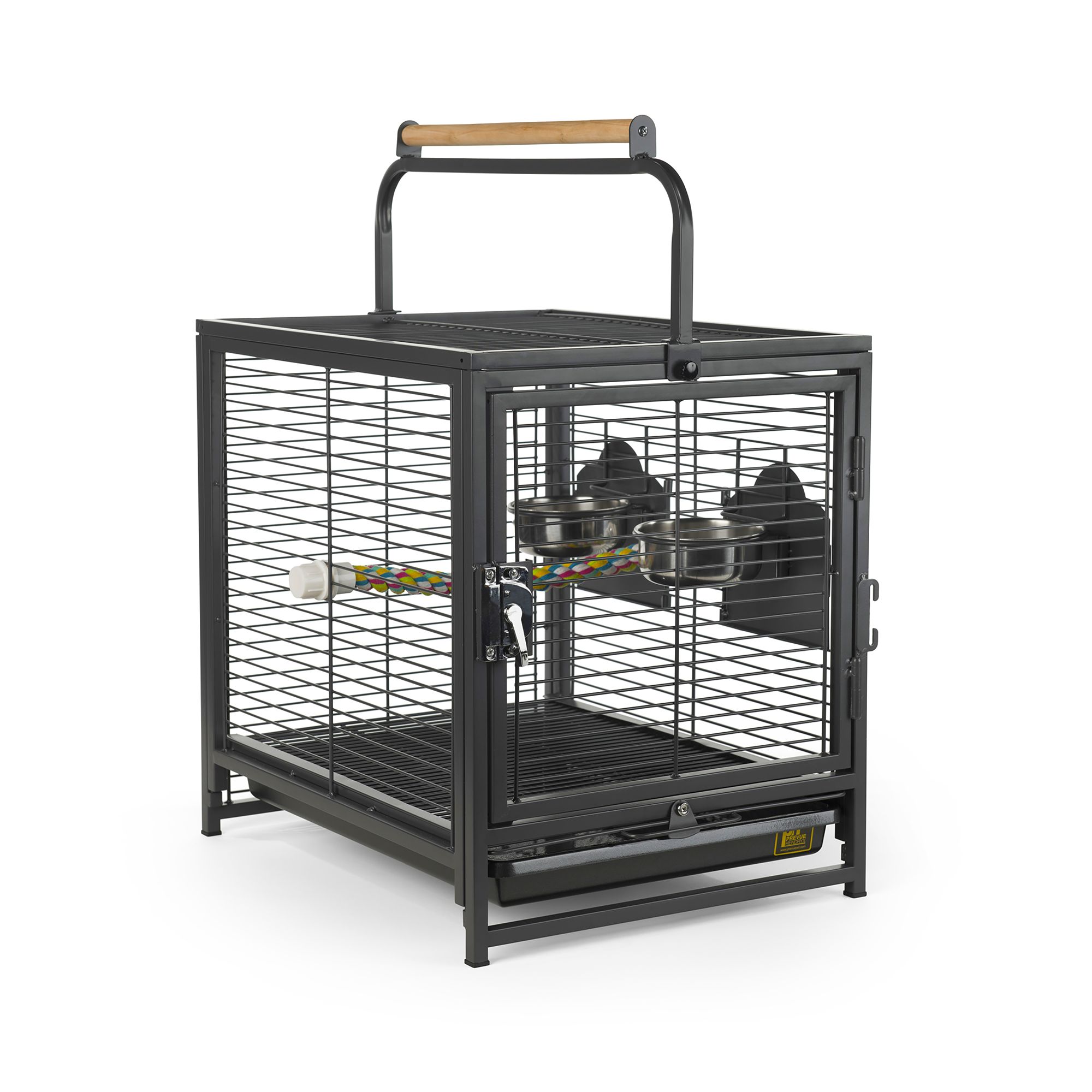 Birds can travel either in a padded carrier or a travel cage equipped with perches. Provide food and water at all times.