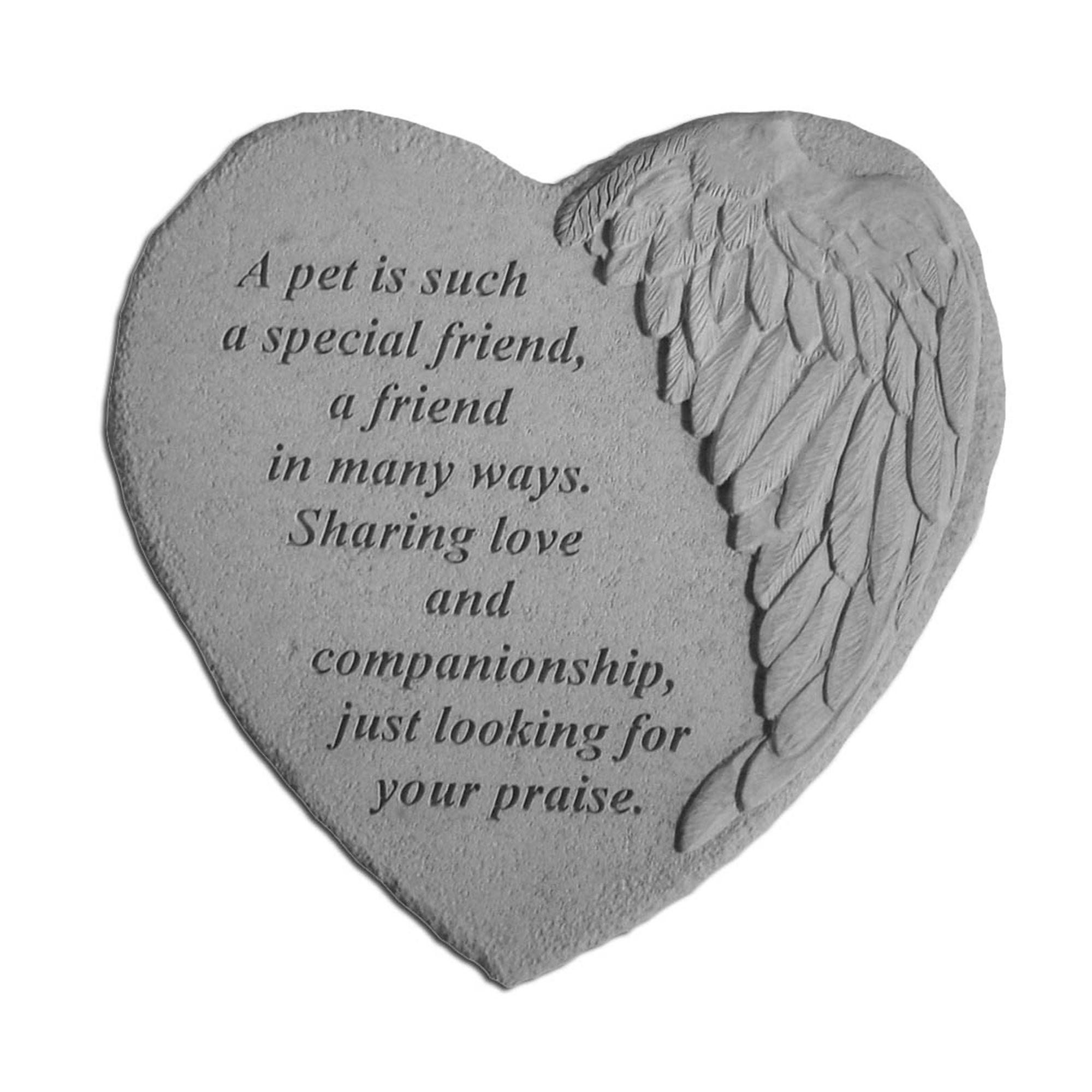The beautiful verse on this Kay Berry Not Forgotten Pet Headstone with urn reads: "Gone yet not forgotten, although we are apart, your spirit lives within me, forever in my heart." A container in the bottom can hold a memento of a beloved pet. As with any outdoor item, it should be protected from ice and snow. Do not allow item to stand in ice, do not allow ice to form in any area where water may collect. Statue must be covered if left outdoors during the winter and periods of freeze in order to avoid cracking and other damage. Direct sunlight may cause weathering and fading.