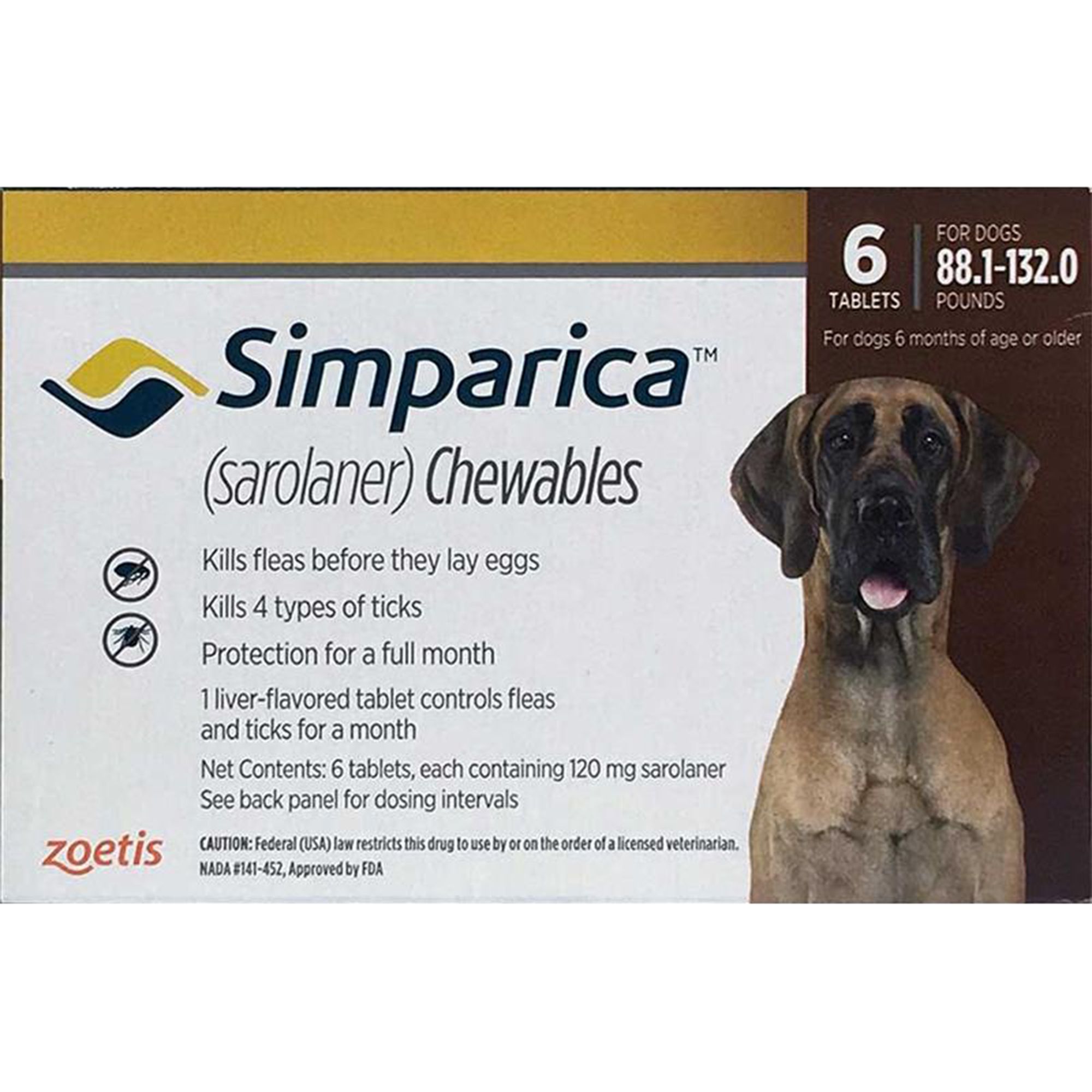 • Tick and flea treatment & infestation prevention for dogs 8 weeks of age and older, and weighing 4.4 pounds or greater
