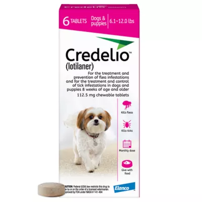 Precautions: *For complete product information including warnings and precautions, please refer to the manufacturer package insert. For oral use in dogs only– not for human use. Keep this and all drugs out of the reach of children. Keep Credelio in a secure location out of reach of dogs, cats, and other animals to prevent accidental ingestion or overdose. Lotilaner is a member of the isoxazoline class. This class has been associated with neurologic adverse reactions including tremors, ataxia, and seizures. Seizures have been reported in dogs receiving isoxazoline class drugs, even in dogs without a history of seizures. Use with caution in dogs with a history of seizures or neurologic disorders. The safe use of Credelio in breeding, pregnant, or lactating dogs has not been evaluated. Discuss the risks of using this medication with your veterinarian if your pet is in one of these groups. Do not administer to animals with a known history or suspected allergy⁄hypersensitivity to any isoxazoline class drug, including this medication or any of its ingredients. Allergic reactions to medications may occur. Be sure to inform Vetsource and your veterinarian if your pet has any known drug sensitivities or allergies. If your pet displays symptoms of an allergic reaction, discontinue therapy and call your veterinarian immediately or seek emergency veterinary attention. Symptoms may include (but are not limited to): swollen lips, tongue, face, or airways; difficulty breathing; agitation; profuse salivation; and widespread hives or itching.