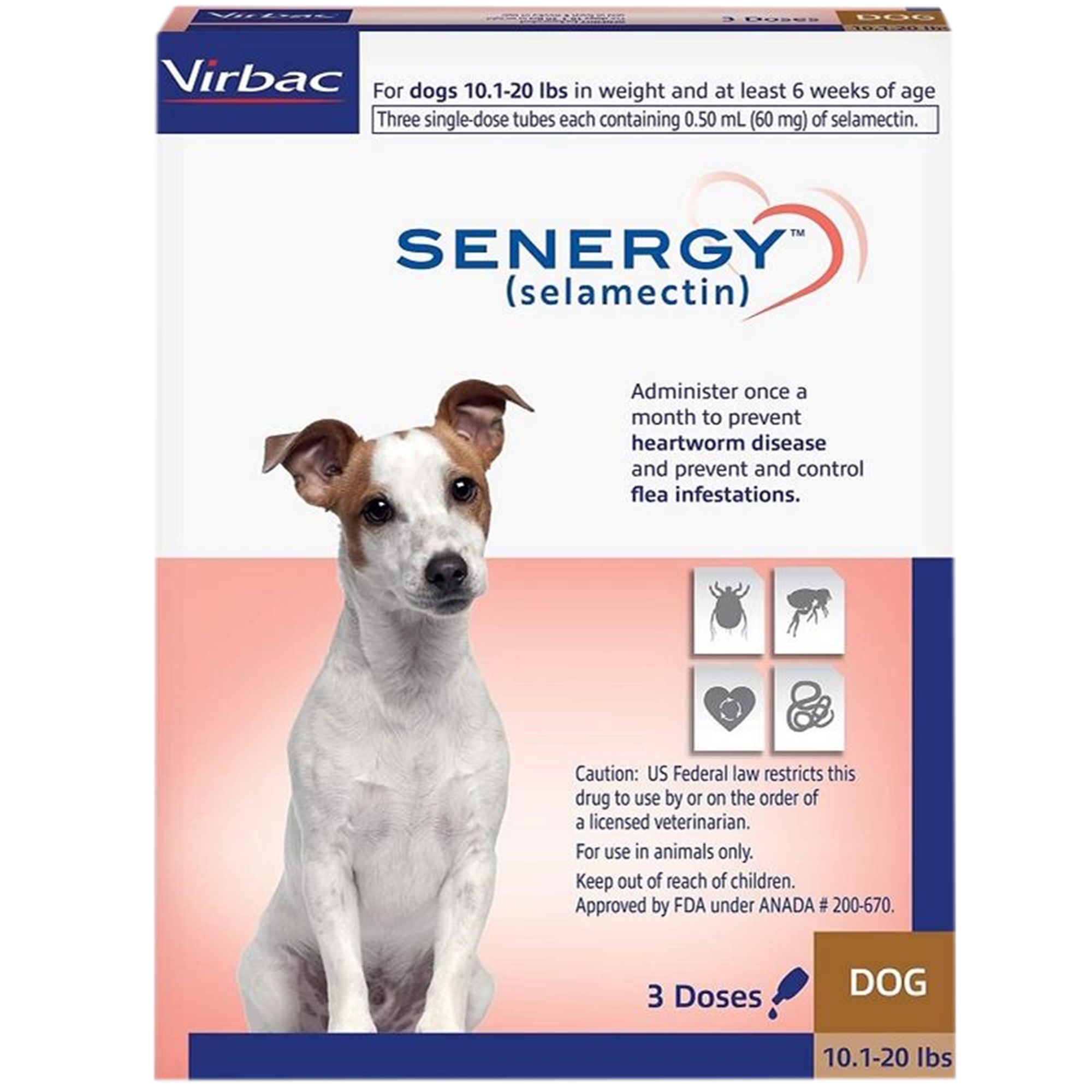 Description: Senergy™ Topical Solution is a broad spectrum once a month topical application that kills adult fleas and prevents flea eggs from hatching and is indicated for the prevention and control of flea infestations, prevention of heartworm disease, and the treatment and control of ear mite infestations. Senergy™ is also indicated for the treatment and control of sarcoptic mange and for the control of American dog tick or wood tick infestations.