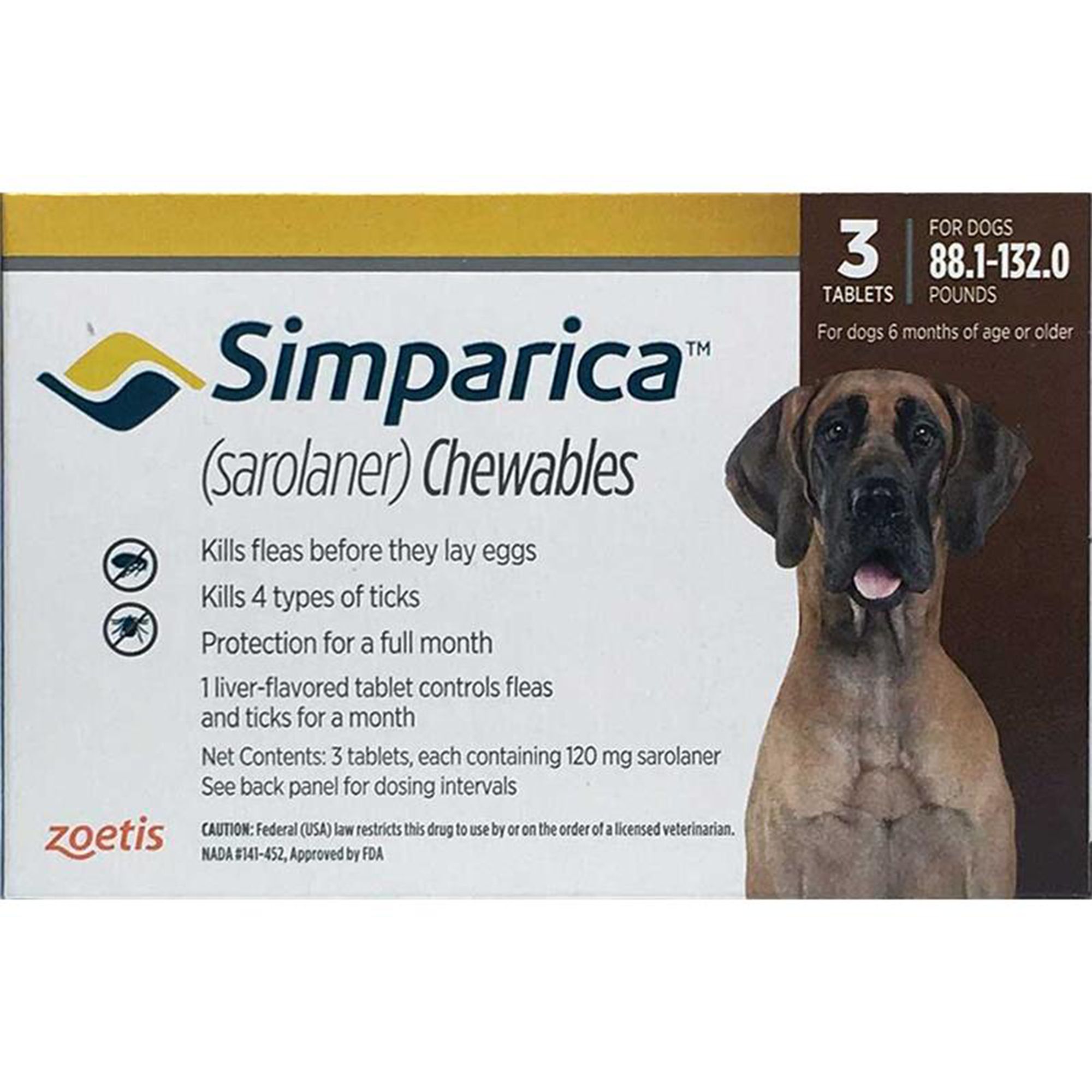 • Ticks and fleas don’t slow down at the end of the month. Your dog’s tick and flea protection shouldn’t either. Simparica starts—and stays—strong all month long1. Approved for dogs 6+ months old, weighing more than 2.8 lbs., Simparica is a tasty, pork liver–flavored monthly chewable that protects dogs from ticks and fleas for 35 days1. It is approved to kill 5 types of ticks including the Gulf Coast tick, Brown dog tick, Deer tick, American dog tick, and Lone Star tick and is FDA–approved to block infections that may cause Lyme disease by killing deer ticks. Treatment may begin at any time of the year and may continue monthly, year–round without interruption. Feed one chewable; administer at monthly intervals. Simparica comes with a 100% satisfaction guarantee on prevention. If you feel that Simparica isn’t providing sufficient protection, please call Zoetis’ medical support team to discuss the satisfaction guarantee at 1–888–ZOETIS1. Automatic deliveries provide savings, convenience, and the peace of mind that your dog doesn’t miss a dose. Simparica is also eligible for the Zoetis Petcare Rewards Program. Enroll for free today and earn points with every dollar spent on eligible purchases to redeem for services at your vet. Available by veterinarian prescription only. Ask your vet if Simparica is right for your dog.