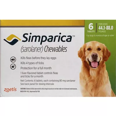 Simparica Chewables for Dogs, 44.1-88 lbs - 3 or 6 Month Supply