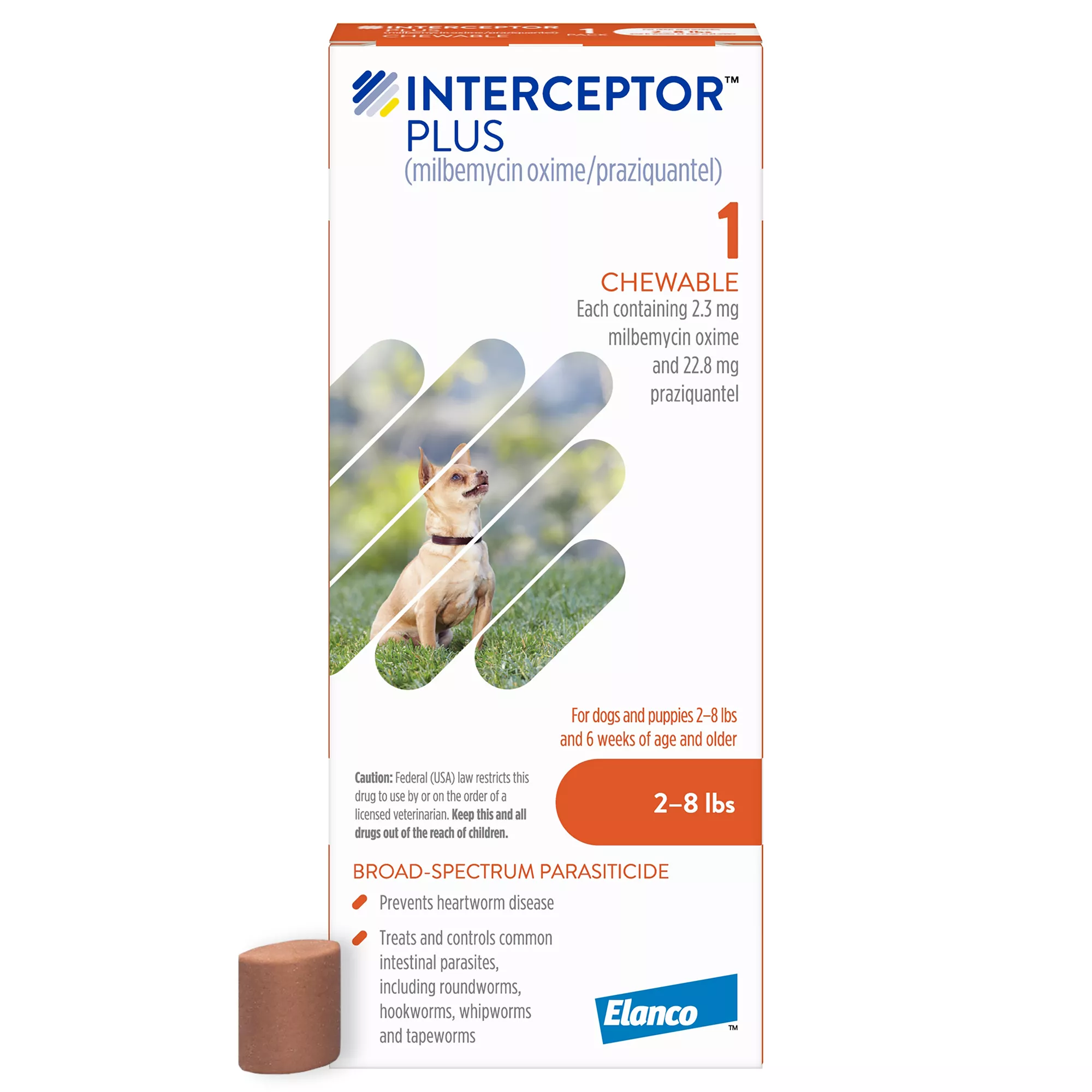 Interceptor Plus Chewable Tablets for Dogs - 2-8 lbs, Orange Box