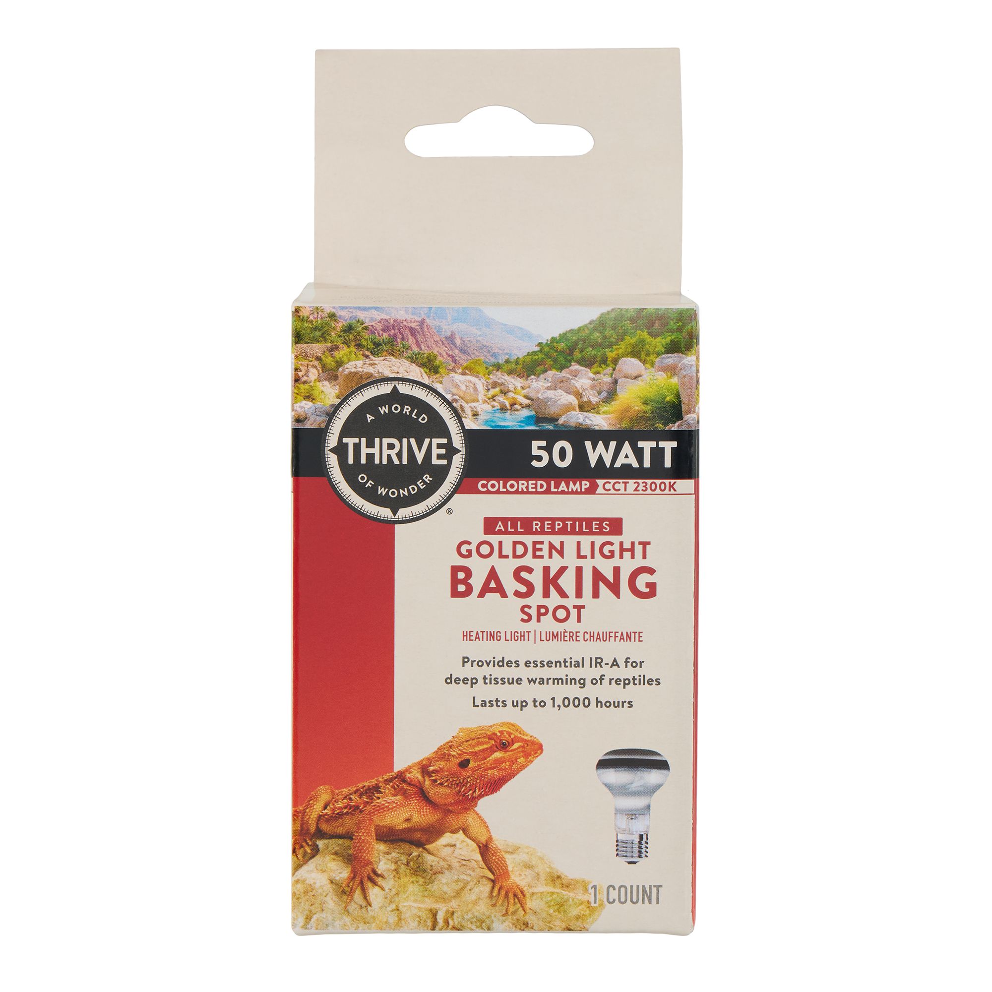 This Thrive™ 50-Watt Golden Light Splashproof Basking Spot provides essential radiant heat through Infrared-A to mimic the sun's natural warmth. It also serves as the source of radiant heat that these pets need to live their healthiest and happiest lives. Your reptile is one of a kind, and with Thrive™ products, so is the world you create for it. With our wide range of unique features and accessories, your creativity has no boundaries. The further you go, the richer your reptile's world becomes. Only at PetSmart.