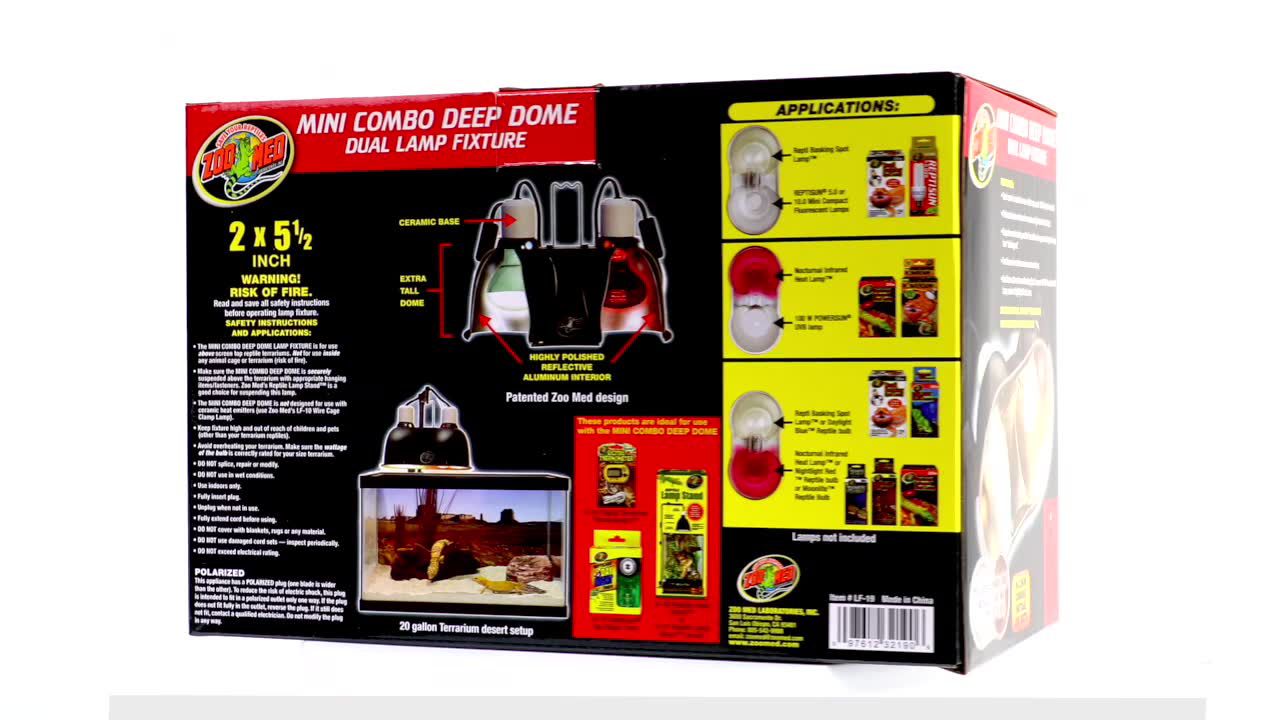 DESCRIPTIONThe Zoo Med Mini Combo Deep Dome Reptile Lamp Fixture offers two fixtures in one for maximum convenience! The dual fixture allows for one Basking Spot Lamp or 100 W PowerSun UV Lamp and one Nightlight Heat Lamp.