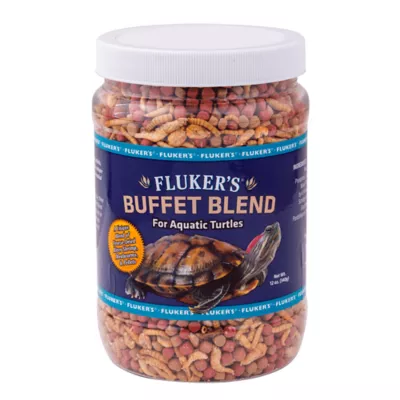 Fluker's Aquatic Turtle Buffet Blend is a combination of vitamins, fortified pellets, freeze dried river shrimp and freeze dried mealworms. This unique blend ensures your pet will receive the proper balance of essential protein, fat, vitamins and minerals.