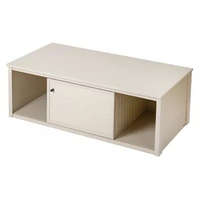 Features & Benefits: Made with ECOFLEX®, a durable and long–lasting wood plastic composite. Moisture resistant for superior odor control and easy cleaning. Use with stacked 48" Mojave Reptile Lounges. Great all–purpose storage cabinet with plenty of storage space for your pet's extra bedding, food, toys or accessories. Left and Right sections: 12.6" L x 22.6"W x 13.9" H. Mid Section: 21.3" L x 22.6" W x 13.9" H. Quick and easy assembly. Some tools are required. Moisture resistant for superior odor control and easy cleaning. Non–toxic and eco–conscious. 10–year limited manufacturer's warranty. U.S. Designed. U.S. Supported. 100% Pet Approved.