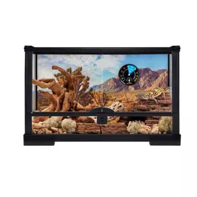 This Thrive 10 Gallon Open Glass Terrarium is the perfect choice of habitats for your pet reptile. This terrarium features open front doors, a locking lid mechanism, an oversized feeding door, and even cord ports for proper cable routing. Your reptile is one of a kind, and with Thrive products, so is the world you create for it. With our wide range of unique features and accessories, your creativity has no boundaries. The further you go, the ricker our pet's world becomes. Only at PetSmart.