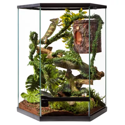 Provide your pet reptile with a place to climb in this Thrive Tropical Hexagon Reptile Terrarium. The vertical design of this hexagon-shaped 20 gallon reptile habitat encourages natural climbing behaviors that ultimately help reptiles move closer to UVB light. UVB rays are essential for calcium absorption and bone health. Provide an optimal living environment for your pet with this hexagon reptile enclosure from Thrive. Only at PetSmart.
