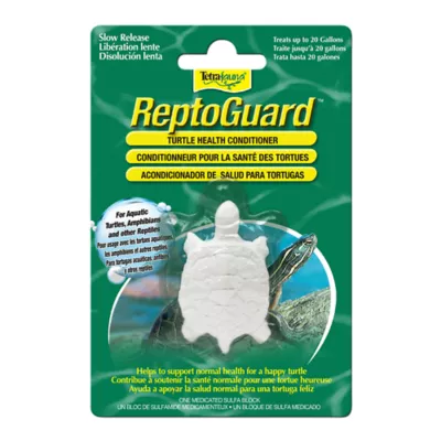 TetraFauna ReptoGuard Turtle Health Conditioner is a slow-dissolving conditioner that helps to support the health of aquatic turtles, as well as amphibians and other reptiles. Each slow-release, medicated sulfa block treats up to 20 gallons of water and lasts up to 2 months. Each block of TetraFauna ReptoGuard Turtle Health Conditioner will slowly dissolve, releasing the active ingredients continuously for up to 60 days. For pet use only - not intended for animals that will be used for human consumption. Use this conditioner with TetraFauna AquaSafe For Reptiles & Amphibians, which neutralizes harmful chlorine, chloramines and heavy metals such as copper, iron and zinc, in tap water and contains colloids that protect turtle skin.