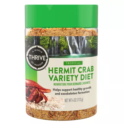 Thrive Tropical Hermit Crab Variety Diet. This hermit crab food helps support healthy growth and exoskeleton formation so that your pet can