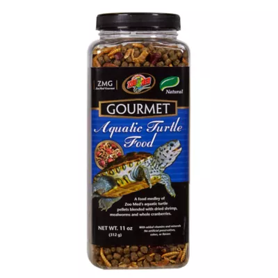A food medley of Zoo Med's aquatic turtle pellets blended with dried shrimp, mealworms and whole cranberries. Zoo Med's new Gourmet Aquatic Turtle Food adds a nice high protein treat to your turtle's diet with the addition of dried shrimp and mealworms. We also add whole cranberries which are a natural food item of many North American species of aquatic turtles.