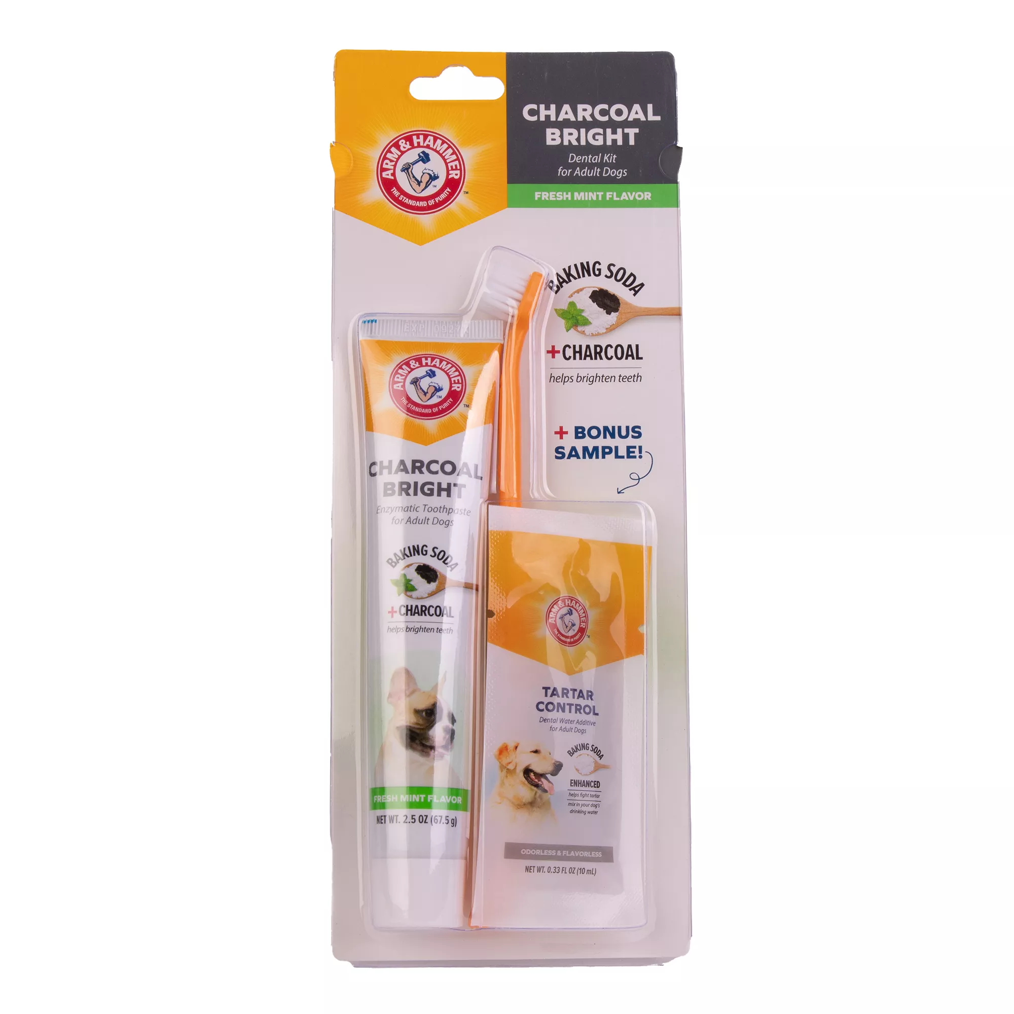 Arm & Hammer Charcoal Bright Dental Kit + BONUS Water Additive Sample, For Dogs 2 lbs +, Fresh Mint